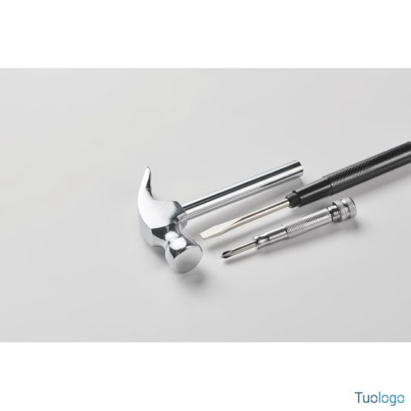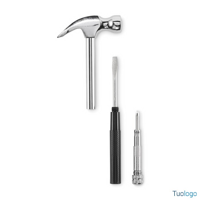 Martello e cacciavite in acciaio Madu. Martello e cacciavite in acciaio al carbonio. Include 4 cacciaviti integrati nell impugnatura. Dimensioni: cm 2x7.3x20.5.