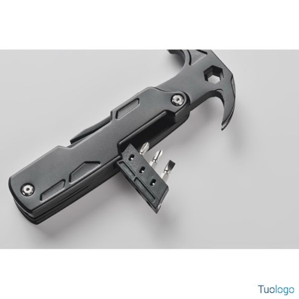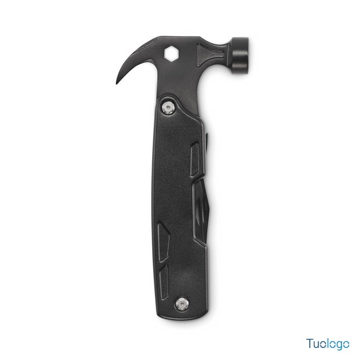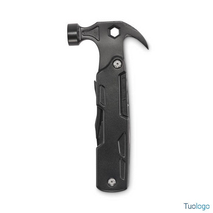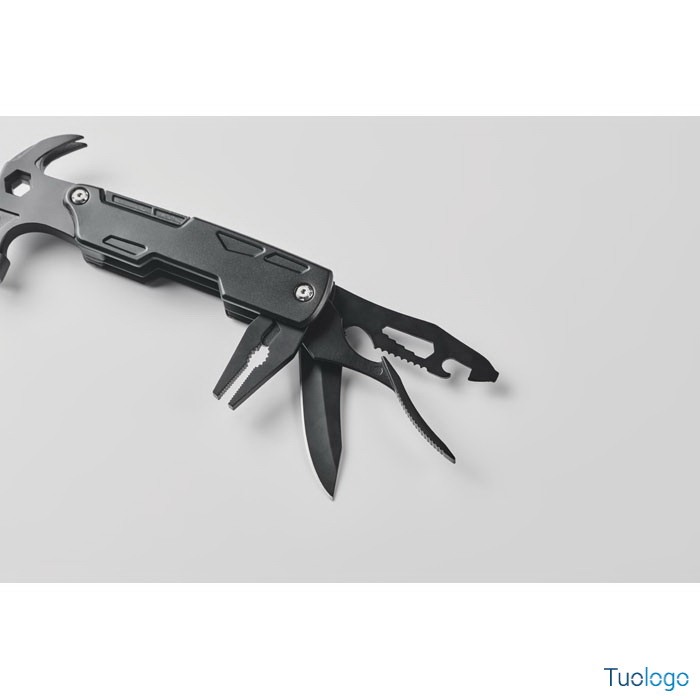 Martello multiattrezzi in acciaio Sparr. Martello multiattrezzi 14 in 1 in acciaio inox con manico in alluminio. Include pinze, cacciaviti, chiavi inglesi, coltello, seghetto, tagliafili e apribottiglie. Dimensioni: cm 16x7,5x2,5.