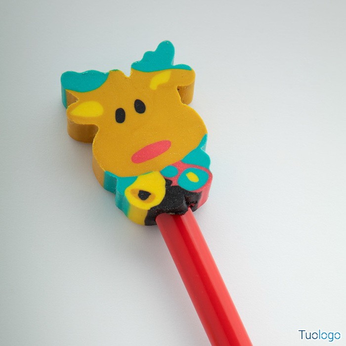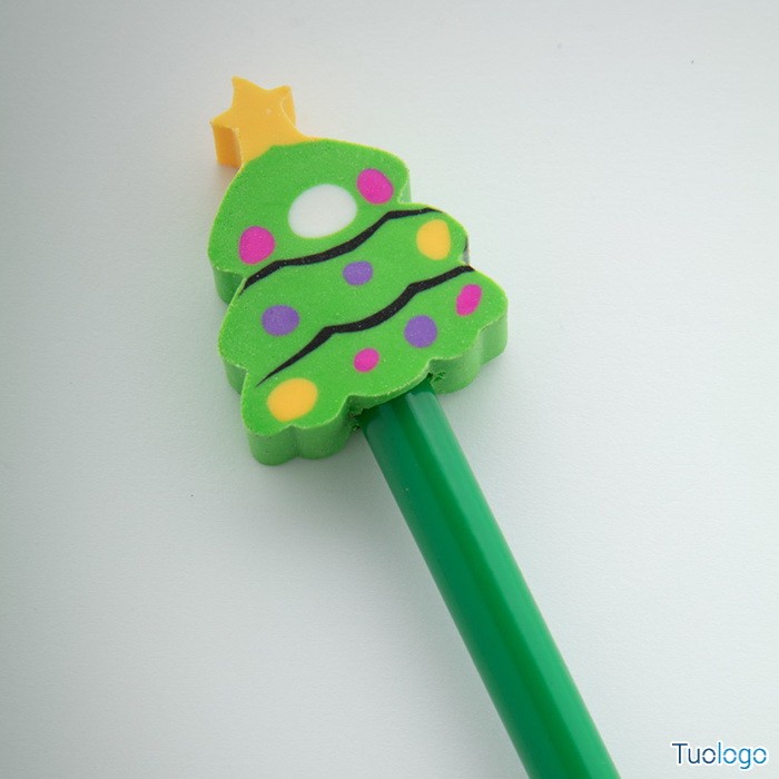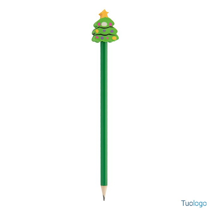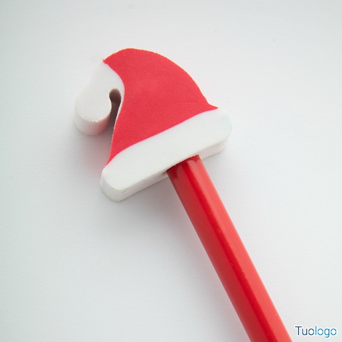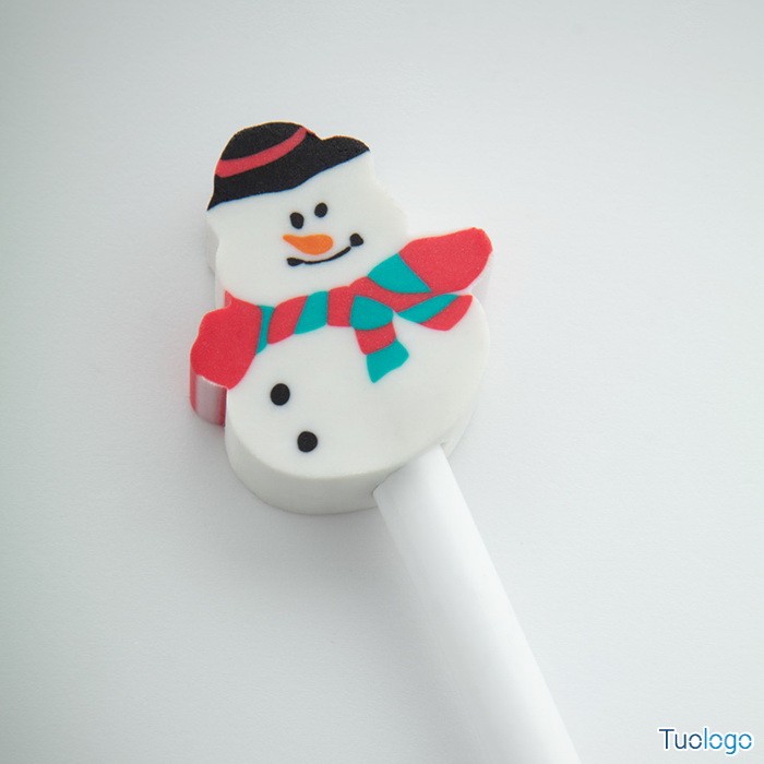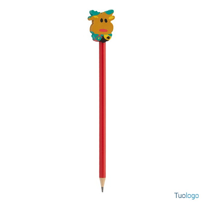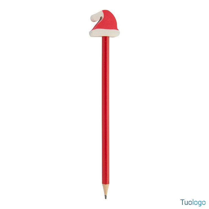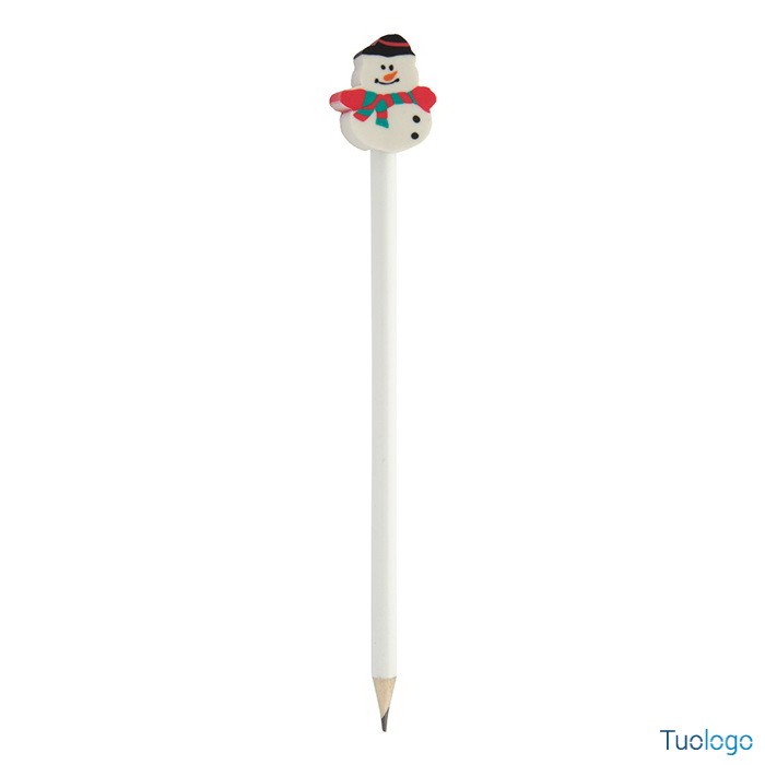 Matita natalizia. Matita in legno con gomma a forma di personaggio natalizio, fornita temperata e mina HB. Dimensioni: diam cm 0,7x19.
