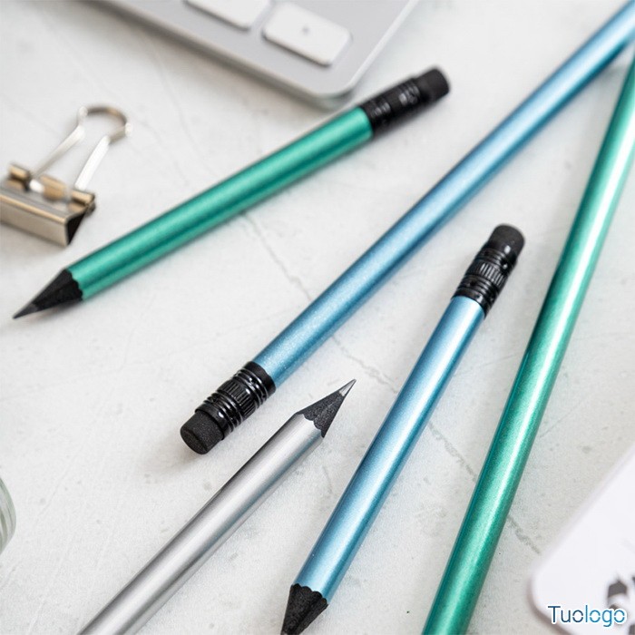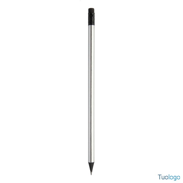 Matita temperata in legno Nobo. Matita temperata in legno di colore nero con finitura metallizzata, e gomma nera. Durezza HB. Dimensioni: diam cm 0,7×19.