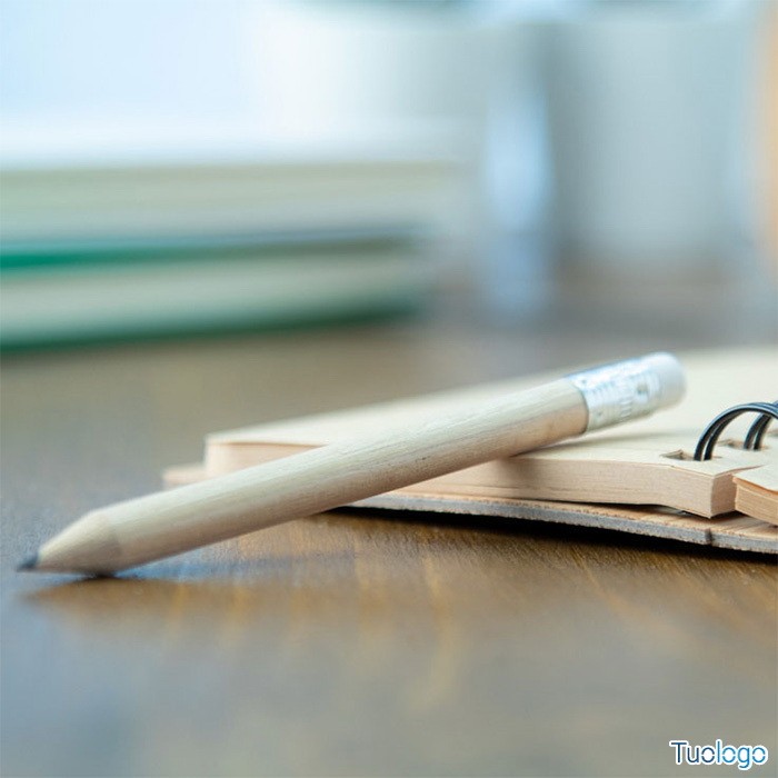 Mini matita in legno Albion. Colore naturale con gommino bianco. Fornita temperata. Stampa logo 1 colore in tampografia inclusa. Dimensioni: diam cm 0,5x9.