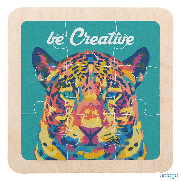 Mini puzzle quadrato Diego. 9 tasselli in plastica e supporto di legno. I prezzi includono la stampa in quadricromia su 1 lato. Dimensioni: cm 12x12x0,3.