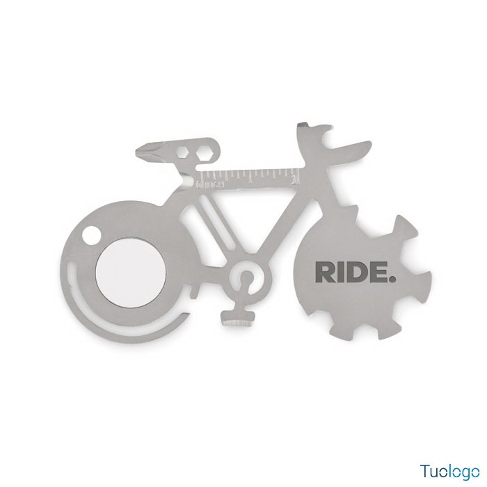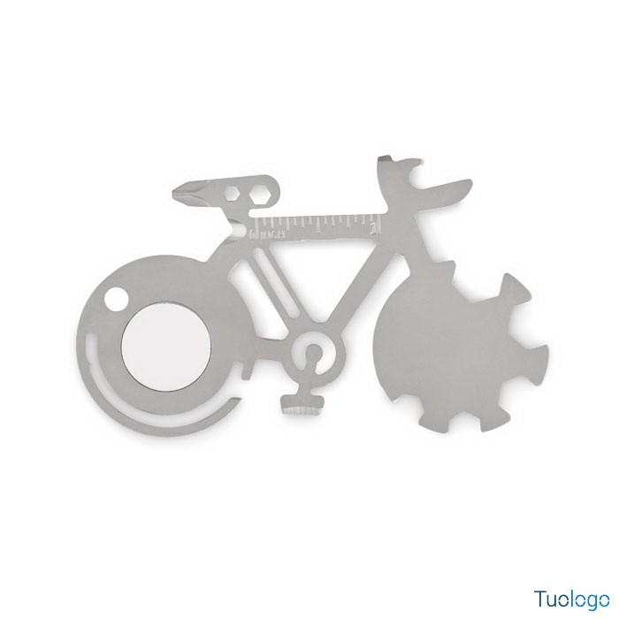 Multitool in acciaio Gueral. Multi-tool 11 in 1 in acciaio inox a forma di bicicletta. Dimensioni: cm 10x6.