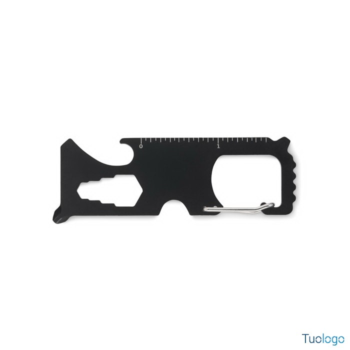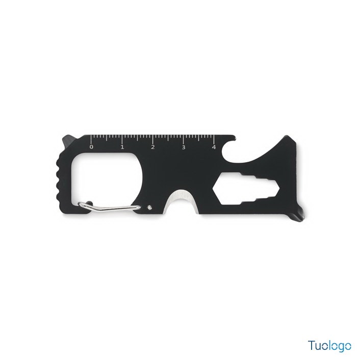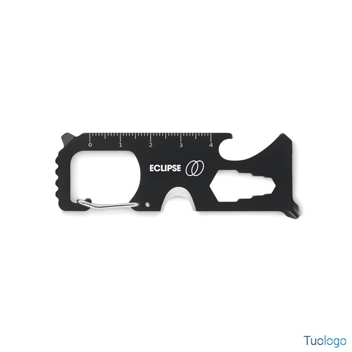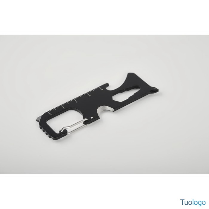 Multitool in acciaio Lesis. Scheda multitool tascabile in acciaio. 8 funzioni: seghetto, tagliafili, chiave inglese, cacciavite Phillips, cacciavite a taglio, metro, apribottiglie e portachiavi Dimensioni: cm 7,8x2,9x0,6.