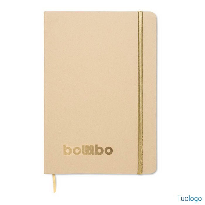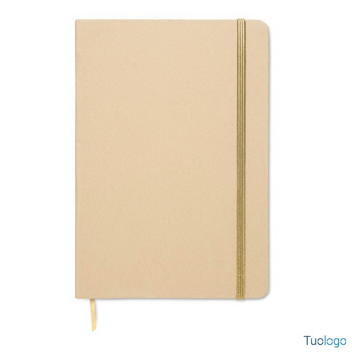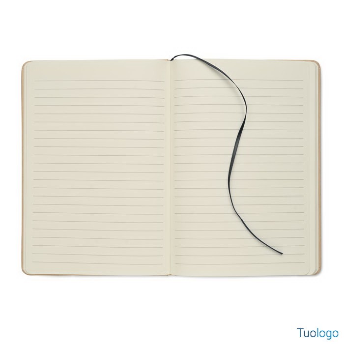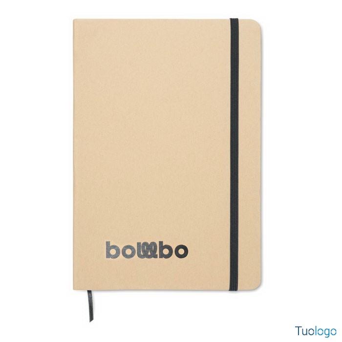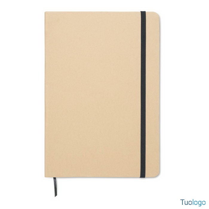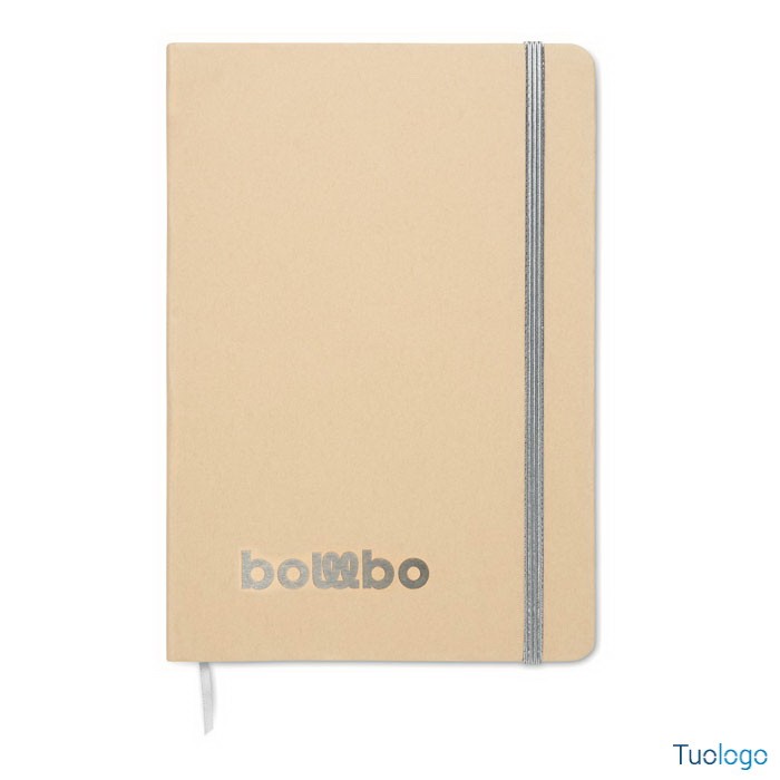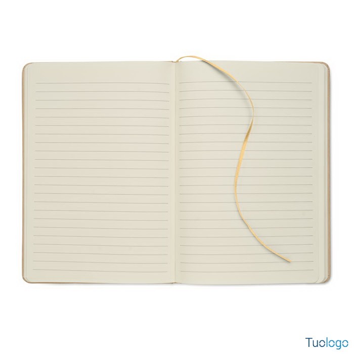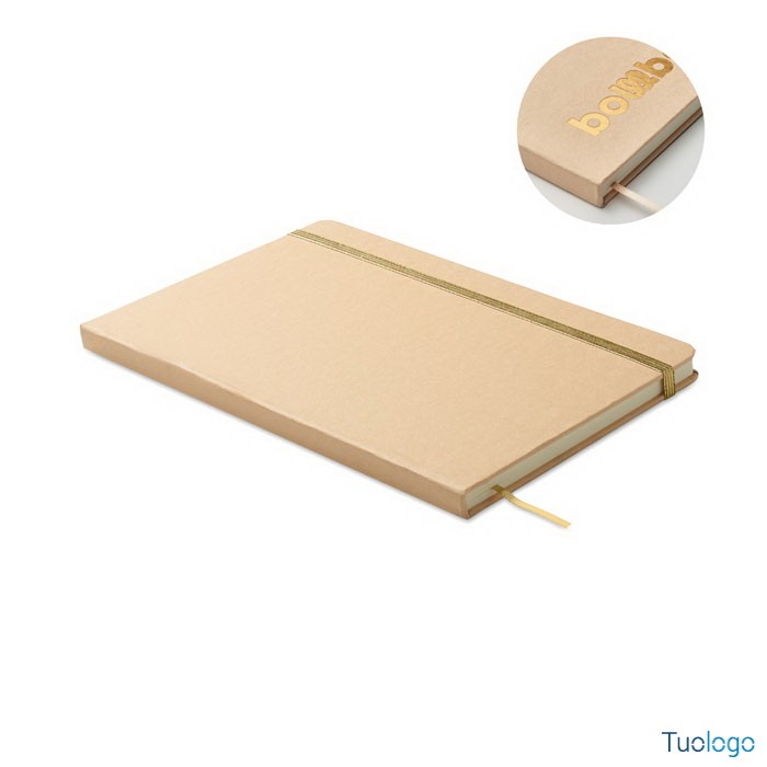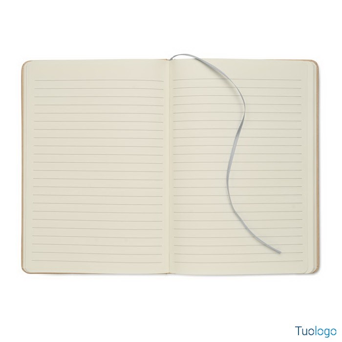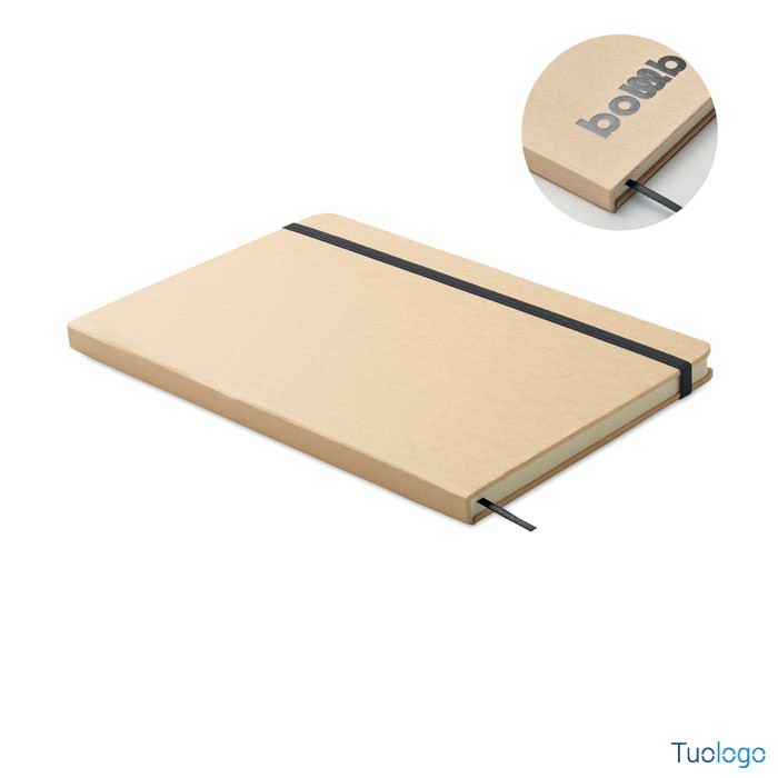 Notebook Cuira. Notebook A5 con copertina rigida in cartone riciclato. segnalibro a nastro in tinta con il colore rivelato. Dopo l'incisione laser il colore viene rivelato.Dimensioni:cm 14.5x1.2x21.