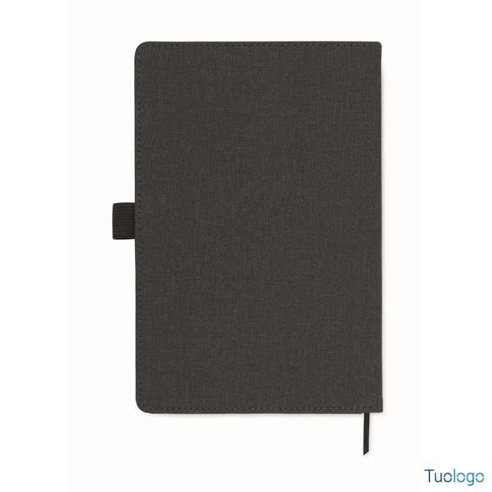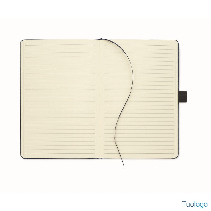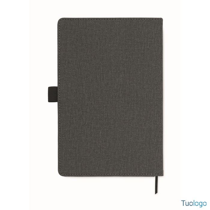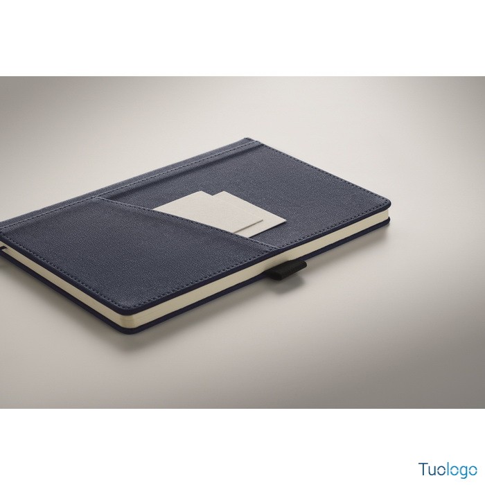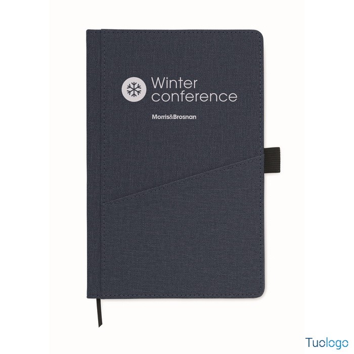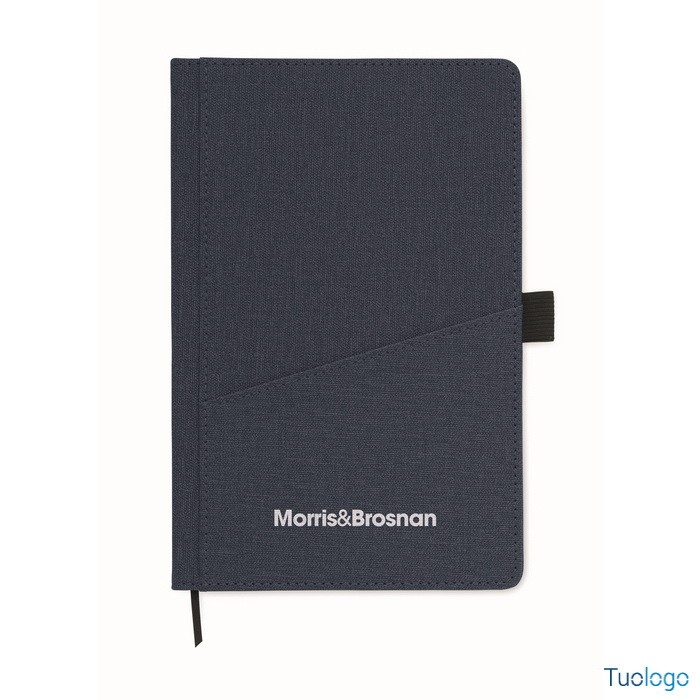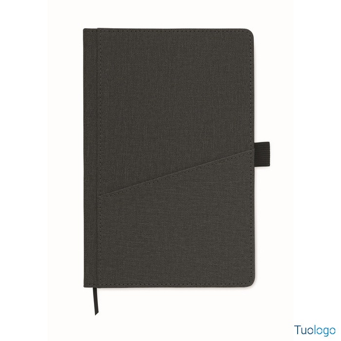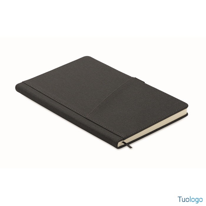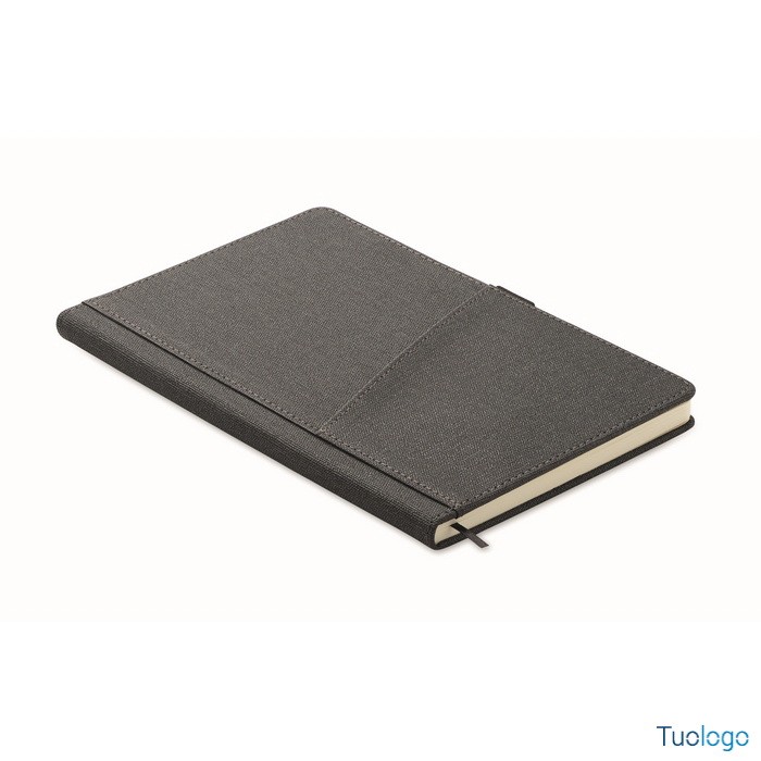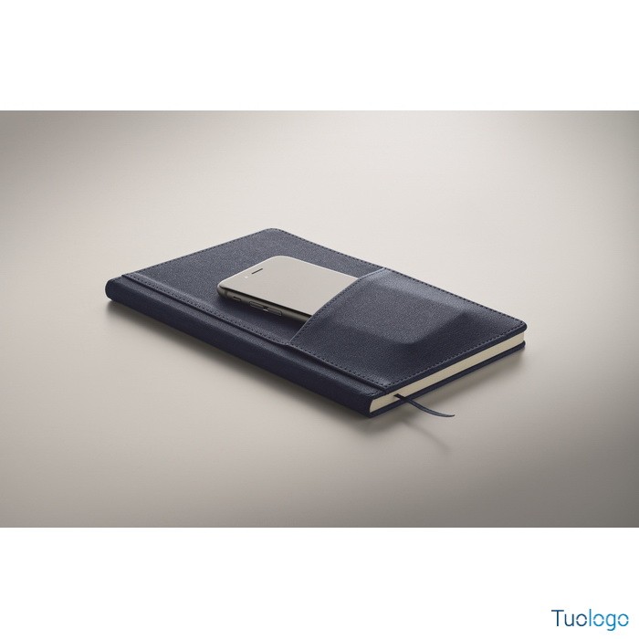 Notebook Quinco. Notebook A5 con copertina rigida in PU e tasca frontale per il telefono. Rilegato con custodia. 160 pagine a righe in carta riciclata (80 fogli). Dimensioni: cm 21X14X1.2.