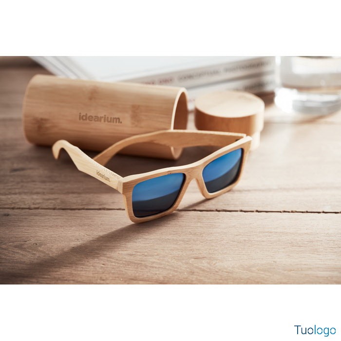 Occhiali da sole bamboo Naro. Con lenti colorate a specchio, presentati in una custodia in bamboo. Protezione UV400.. Dimensioni: cm 13,5x4x14,5.