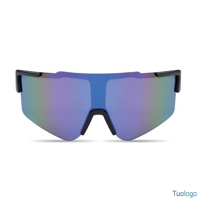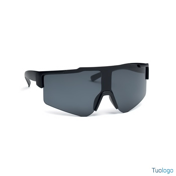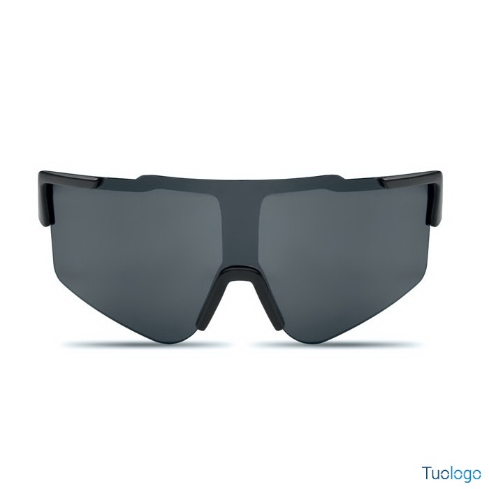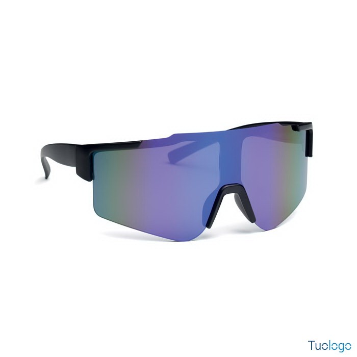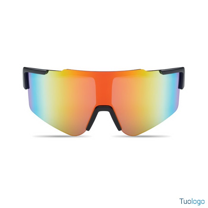 Occhiali da sole sportivi specchiati Yuca. Occhiali da sole sportivi con lenti specchiate e montatura nera. Protezione UV400. Dimensioni:cm 14x5.5x12.