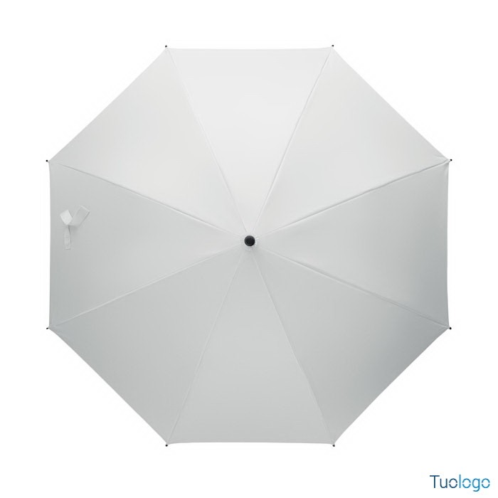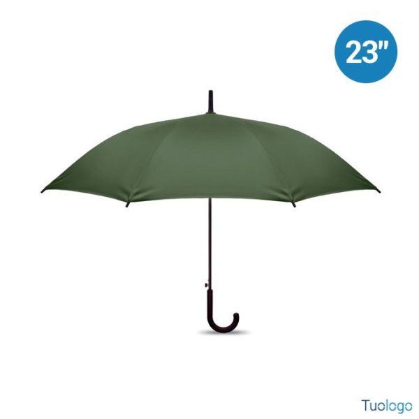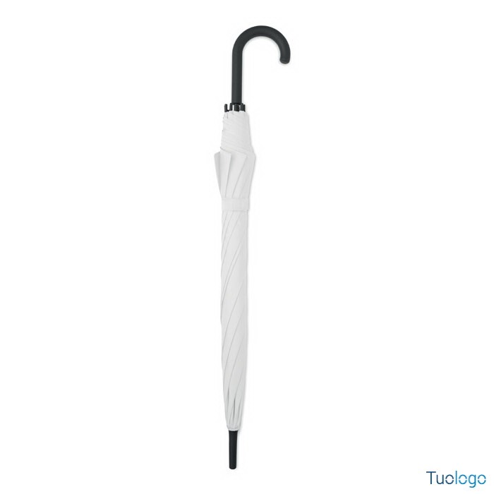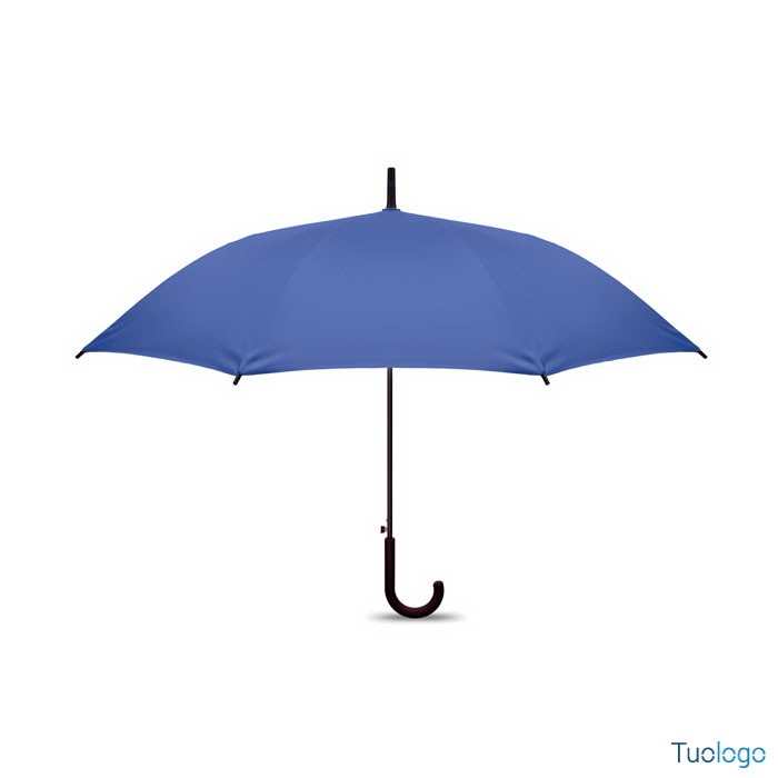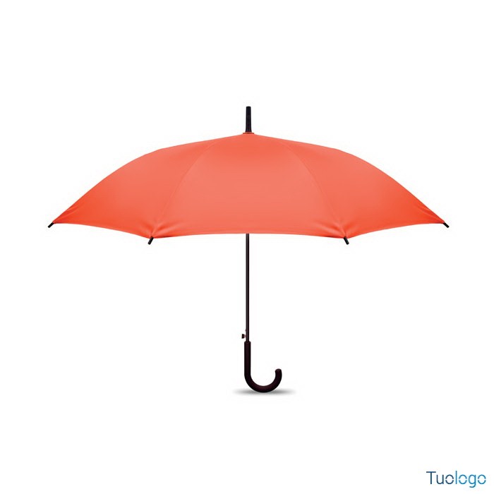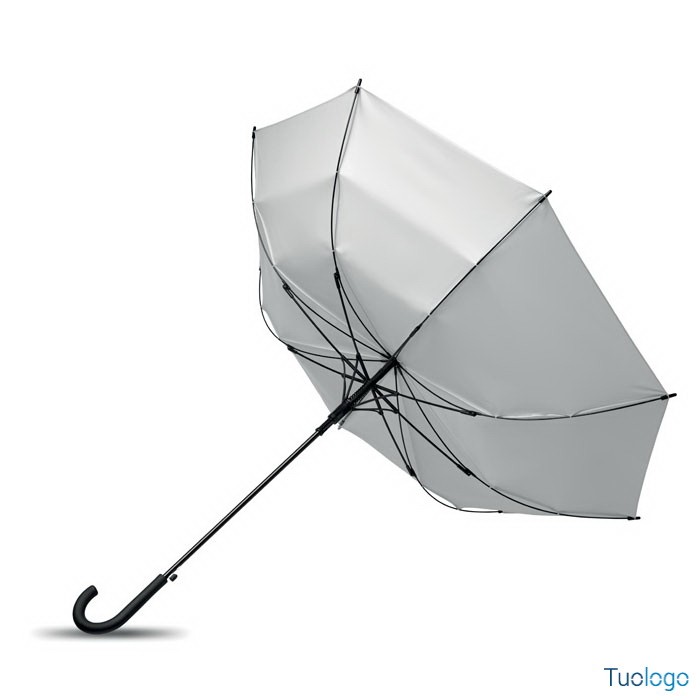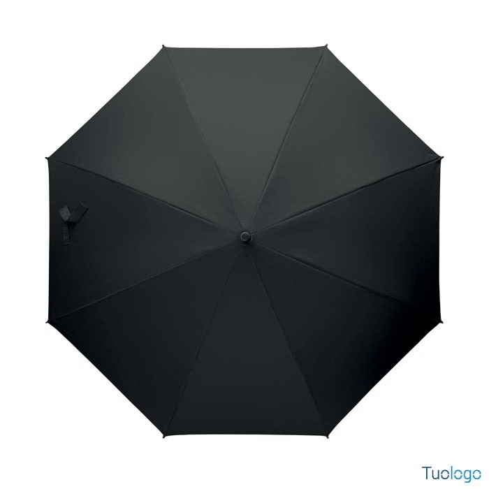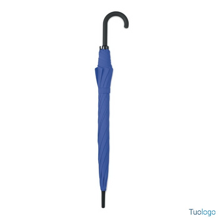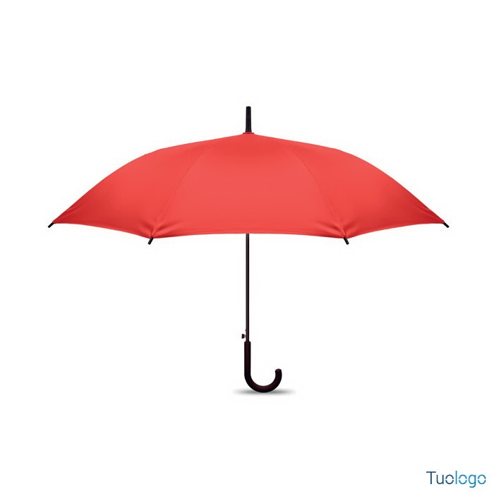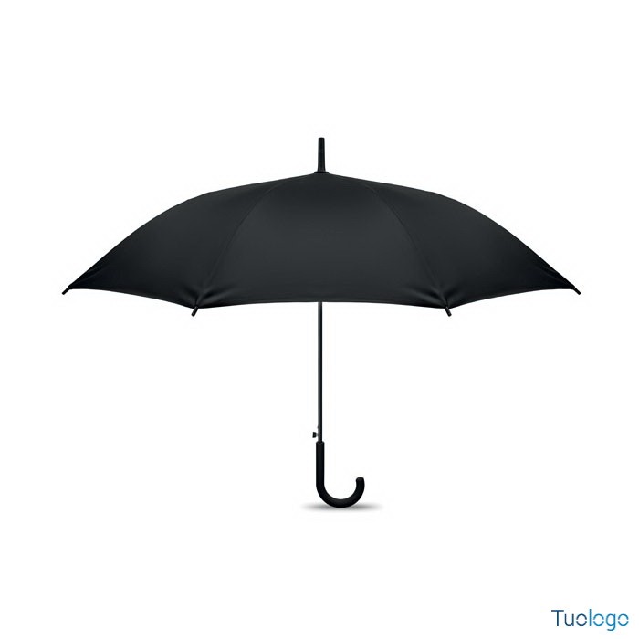 Ombrello antivento Paraiso. Ombrello antivento dritto ad apertura automatica da 23 pollici con struttura in fibra di vetro e pannelli in tessuto pongee 190T. Punte e sommità in plastica. Dimensioni: 58,5 cm Manico curvo in plastica PP gommata. Chiusura manuale.