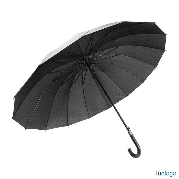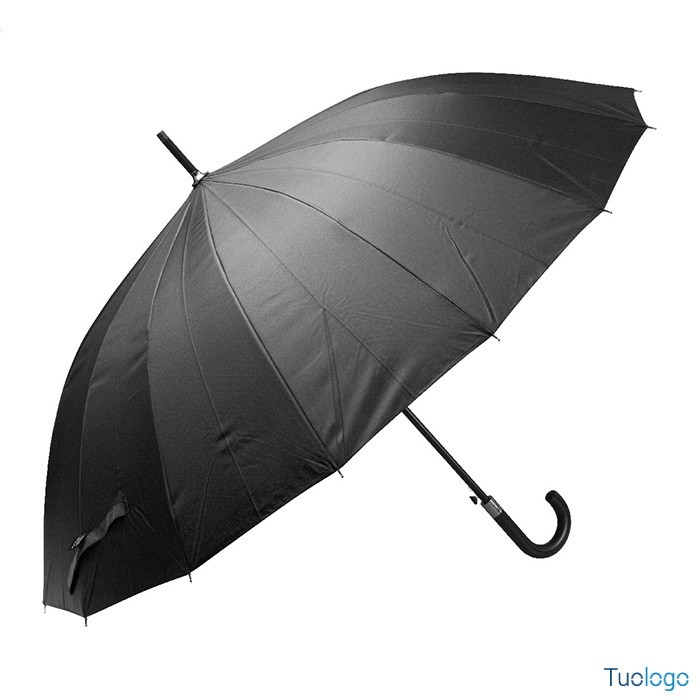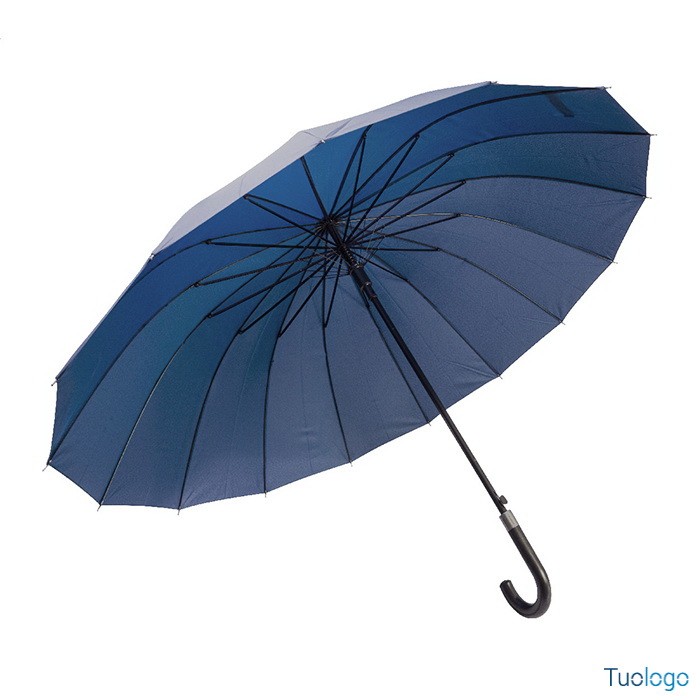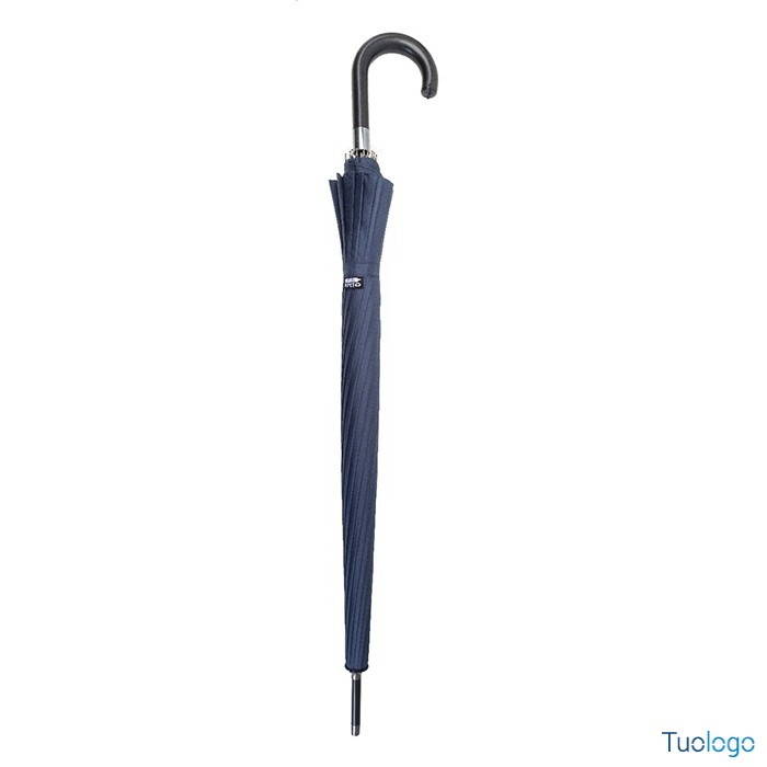 Ombrello Kerke. Ombrello automaticoin pongee 190T antivento di grandi dimensioni con 16 pannelli, manico in pelle PU, struttura in metallo e stecche in fibra di vetro. Dimensioni: cm 119x96,5.