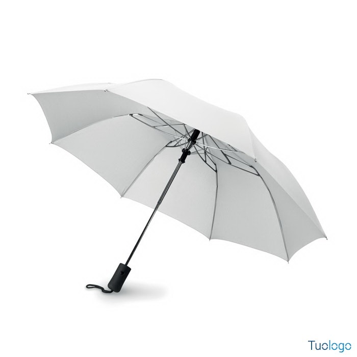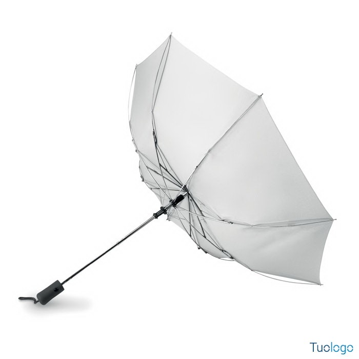 Ombrello richiudibile Ordona. Automatico, 21 pollici, poliestere 190T. Struttura in acciaio placcato zinco, manico nero in ABS gommato, 2 sezioni di chiusura manuale, custodia. Dimensioni: diam cm 93x47.