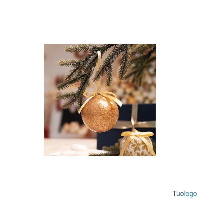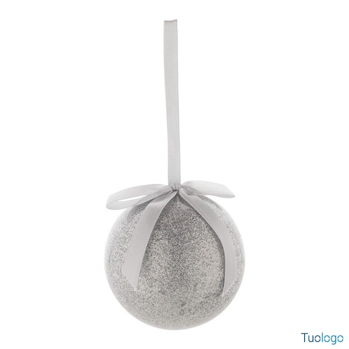 Pallina natalizia Toskrod. Pallina natalizia glitterata 75mm. in PU espanso con gancio a nastro. Prodotto fornito in una confezione regalo di cartoncino in colore coordinato. Dimensioni: diam cm 7,7x7,7x7,7.
