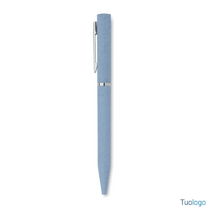 Penna a rotazione in paglia Acai. Penna a sfera a rotazione in paglia di grano ABS, inchiostro blu. Dimensioni: cm 1,1x0,95x14,2.