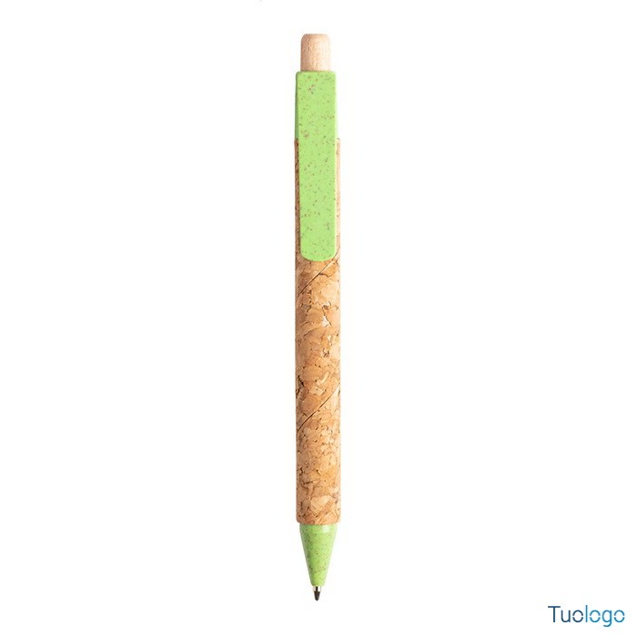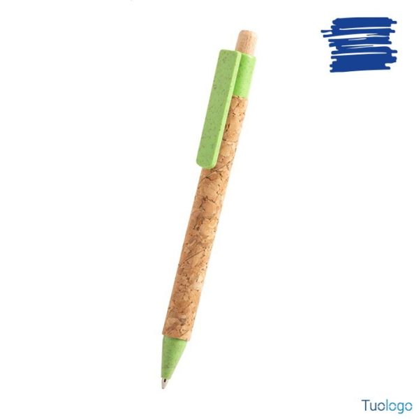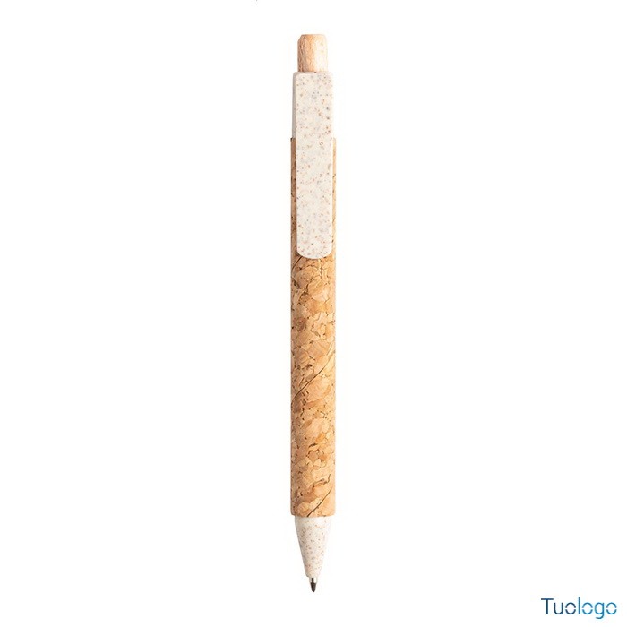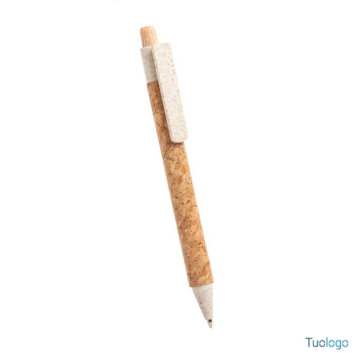 Penna a sfera ecologica Zapallar. Inchiostro blu. Penna a sfera ecologica in plastica di paglia di grano con corpo rivestito in sughero naturale. Dimensioni: diam cm 1x13,5.