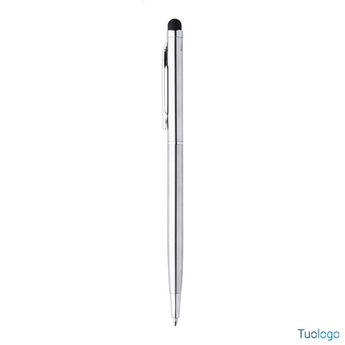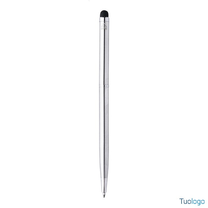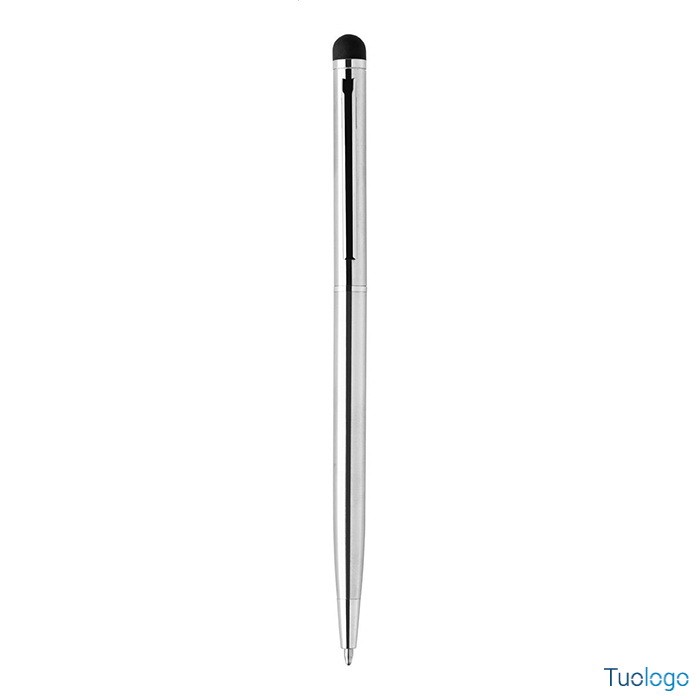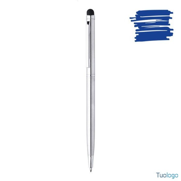 Penna a sfera in acciaio Pagu. Penna a sfera capacitiva in acciaio riciclato con refill blu, meccanismo di apertura a rotazione e parti cromate. Dimensioni: diam cm 0,8×13,7.