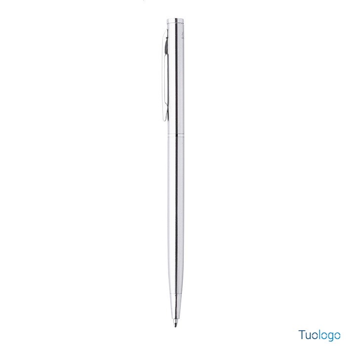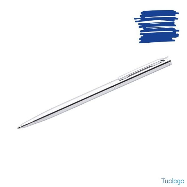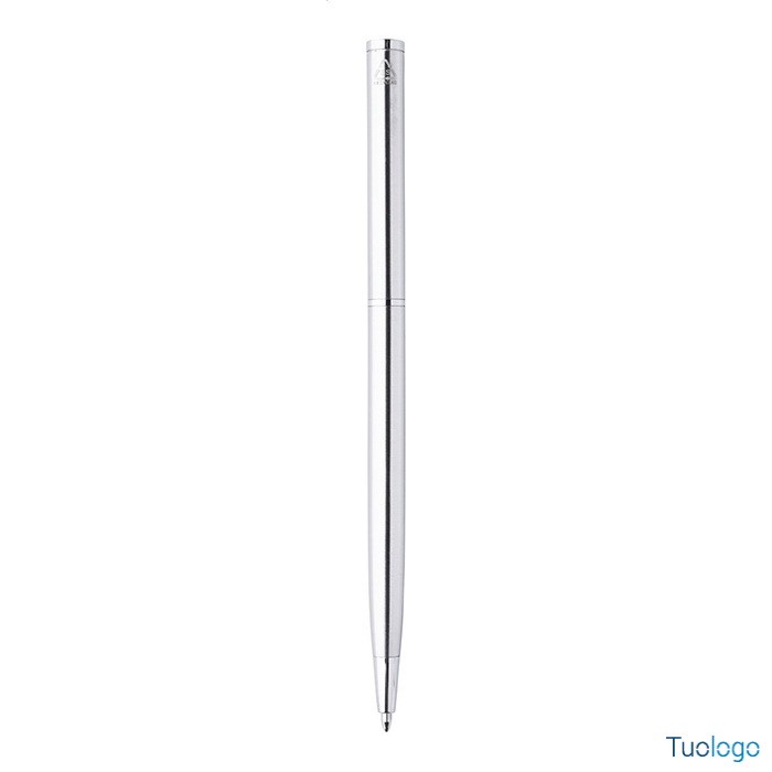 Penna a sfera in acciaio Sebani. Penna a sfera in acciaio riciclato con meccanismo di apertura a rotazione e componenti cromate. Fornita con refill blu. Dimensioni: diam cm 0,8×13,1.