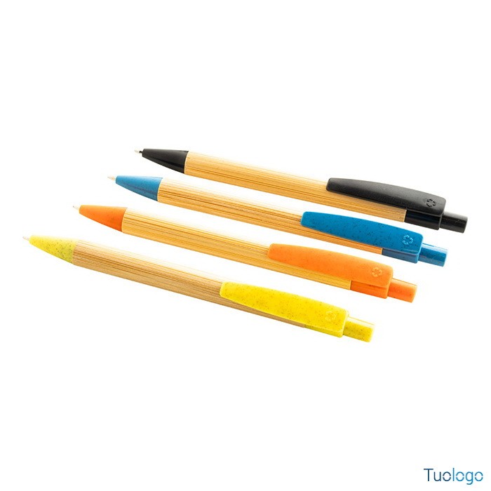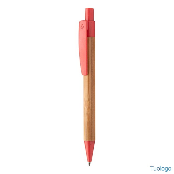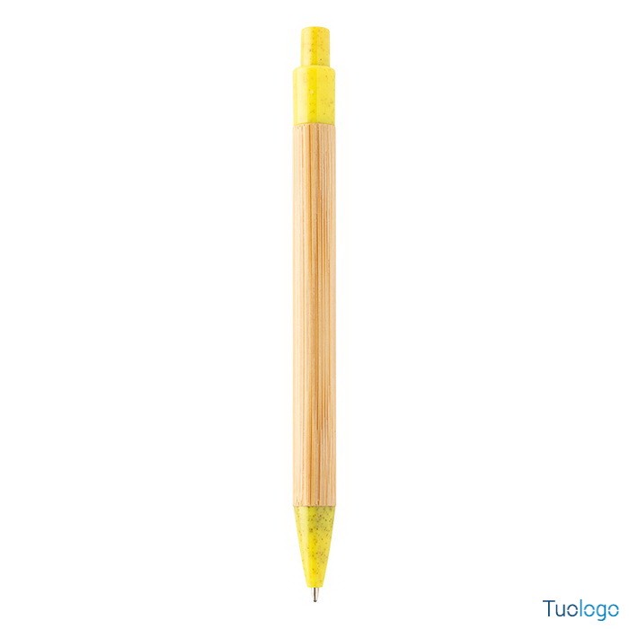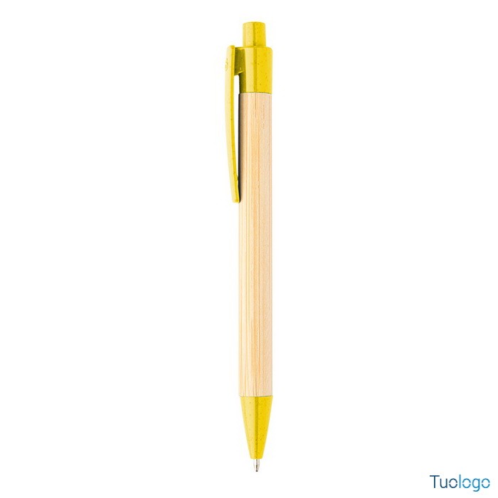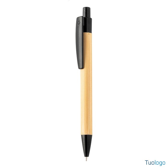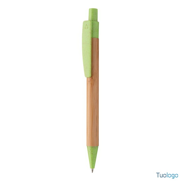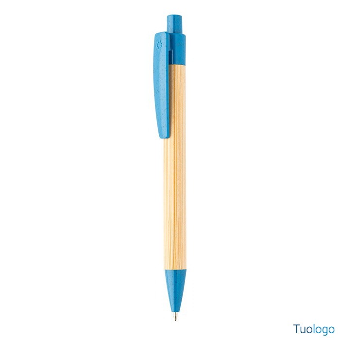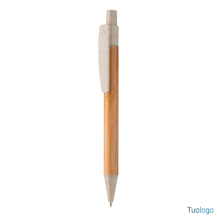 Penna a sfera in bamboo Palmer. Con clip e puntale in plastica ecologica ricavata da paglia di grano. Refill blu. Dimensioni: cm 1,1x14,2.