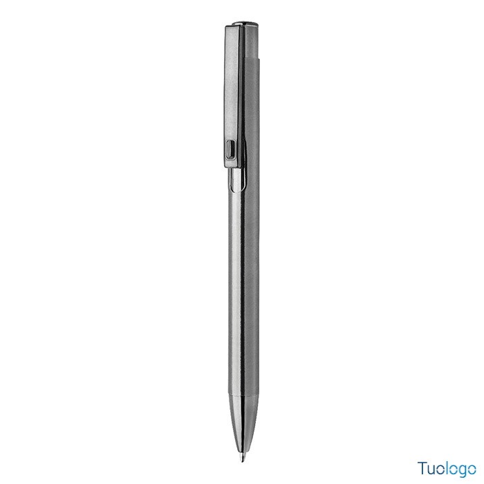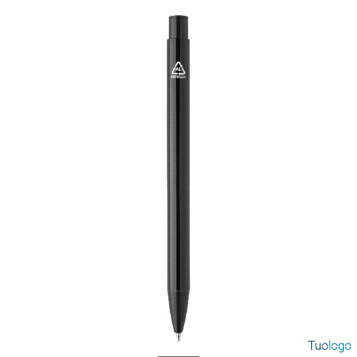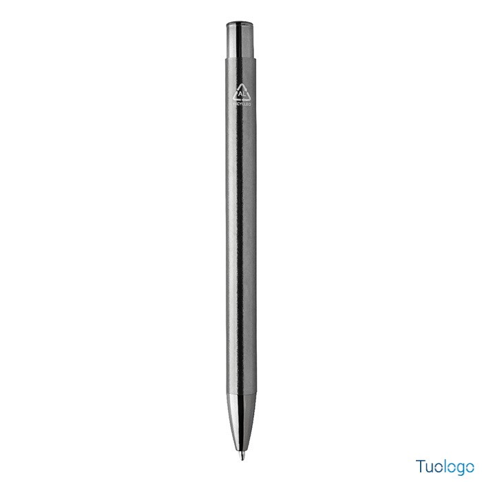 Penna a sfera Middel. Penna a sfera in alluminio riciclato con finitura metallica lucida e refill blu. Dimensioni: cm 1x13,5.