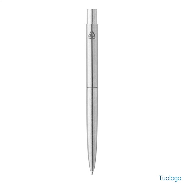 Penna a sfera Minep. Penna a sfera in acciaio riciclato con dettagli cromati e refill blu. Dimensioni: cm 1x14.