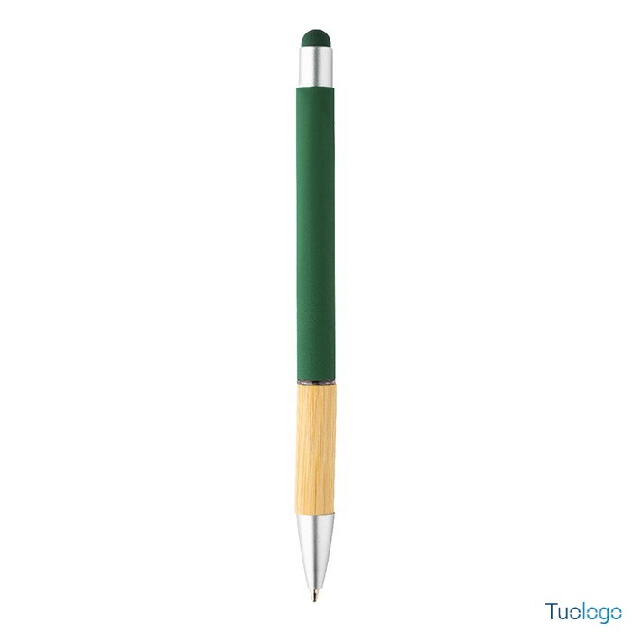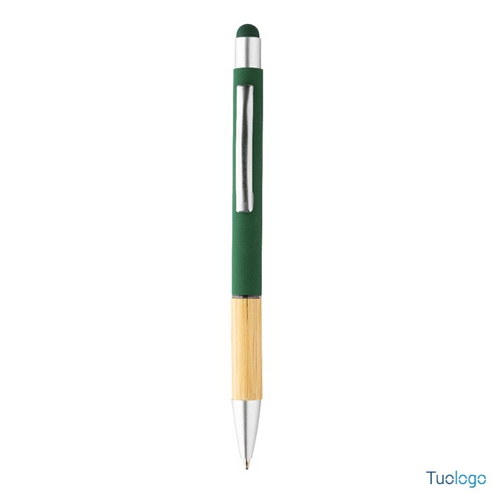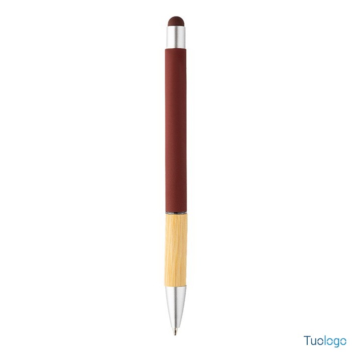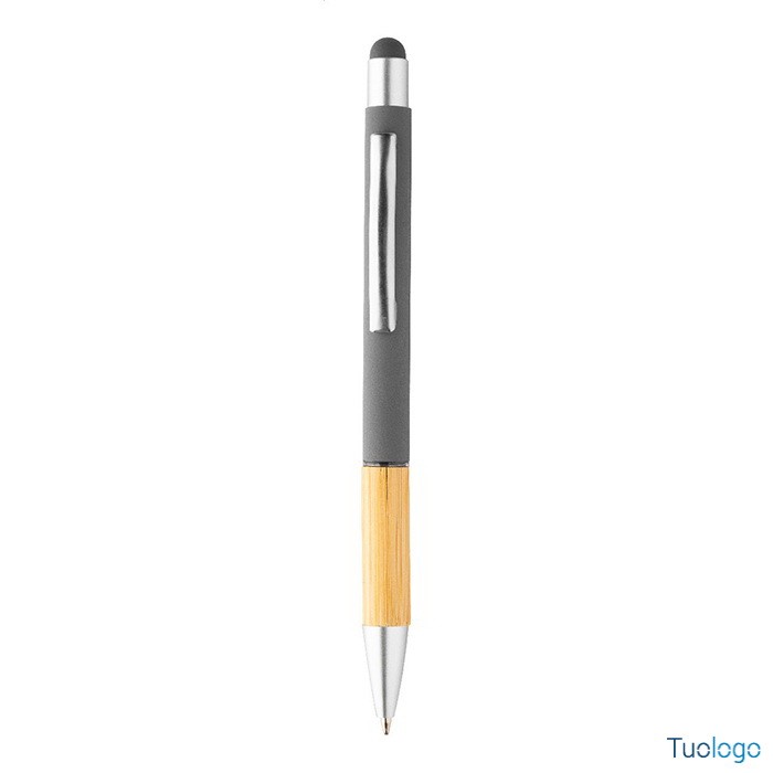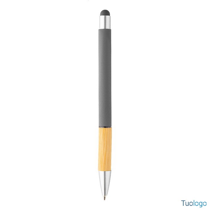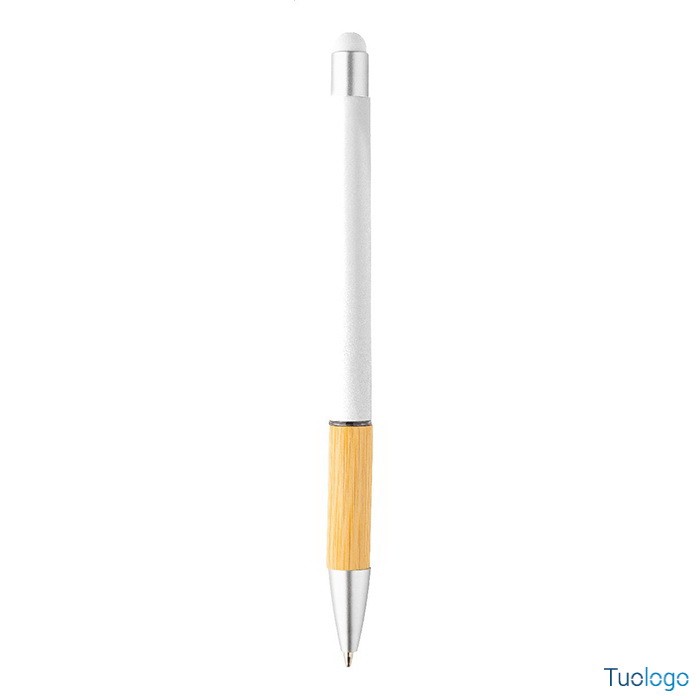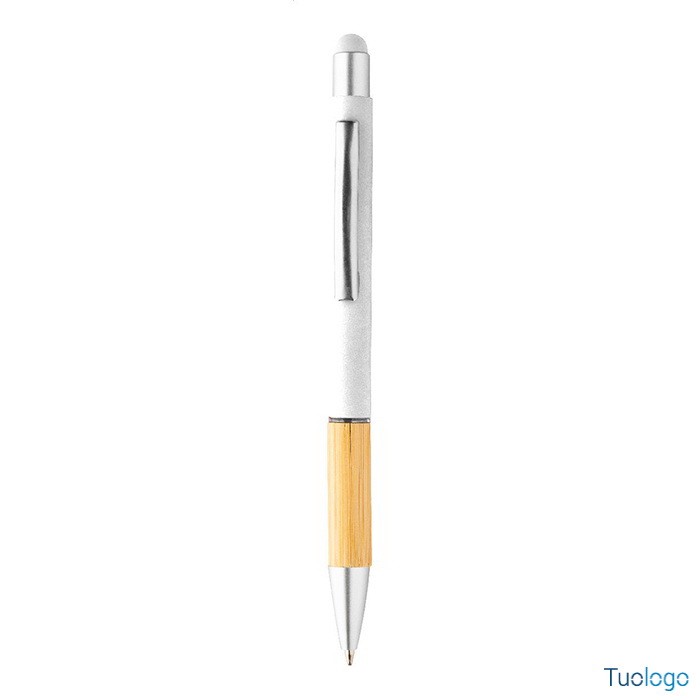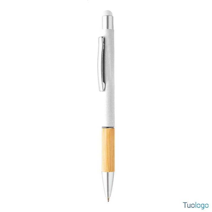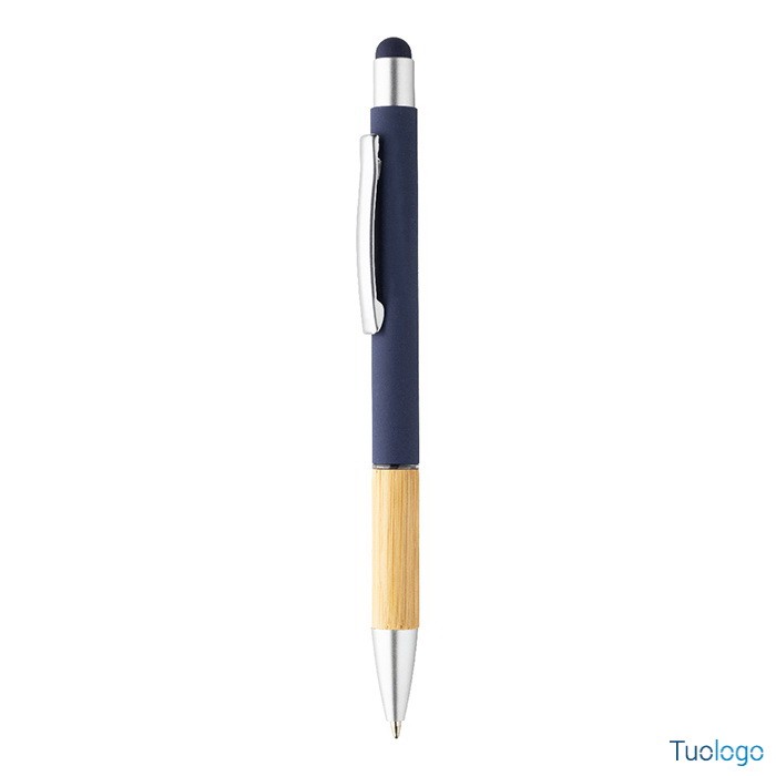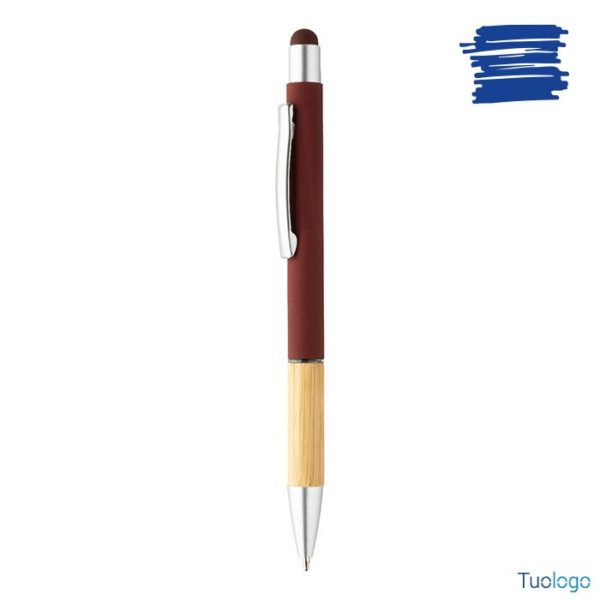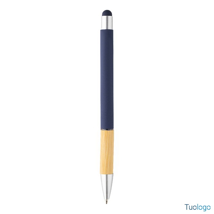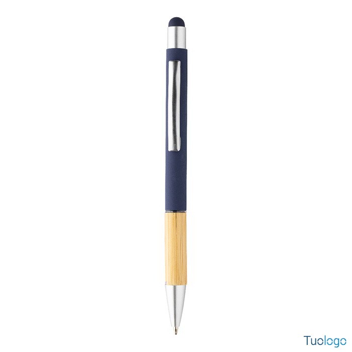 Penna a sfera Rivera. Inchiostro blu. Penna a sfera capacitiva in alluminio con impugnatura in bamboo e finitura opaca. Dimensioni: diam cm 1×14,5.