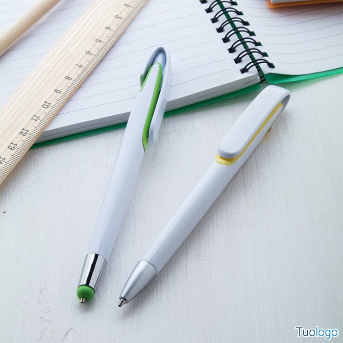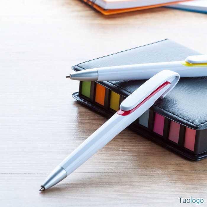 Penna a sfera Saint Joseph. Con fusto bianco e dettagli colorati. Punta silver. Refill blu. Dimensioni: cm 1,1x15.