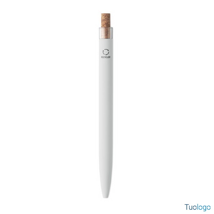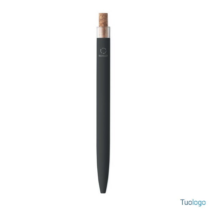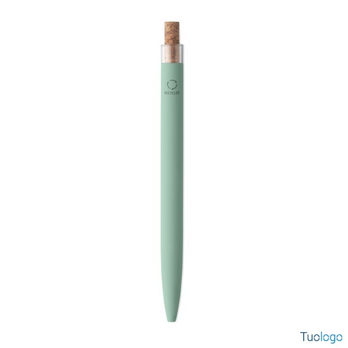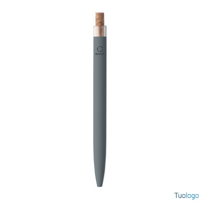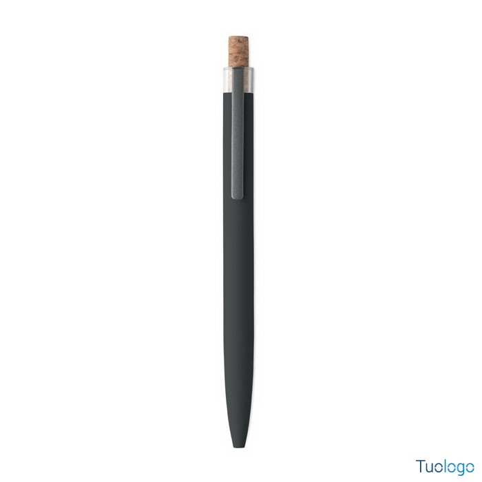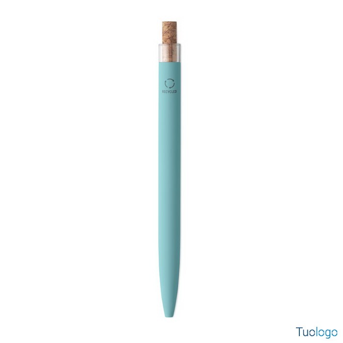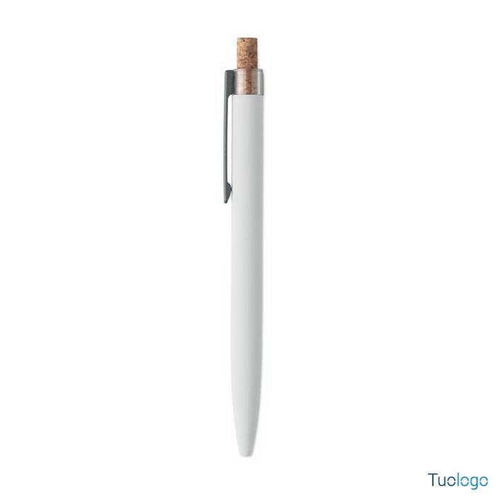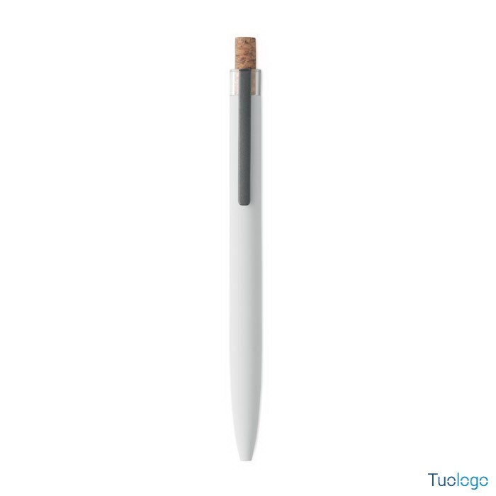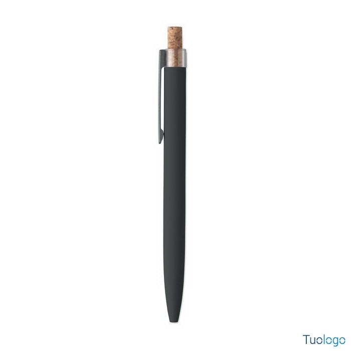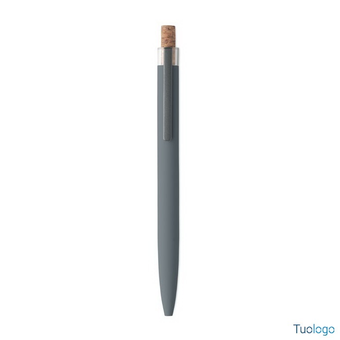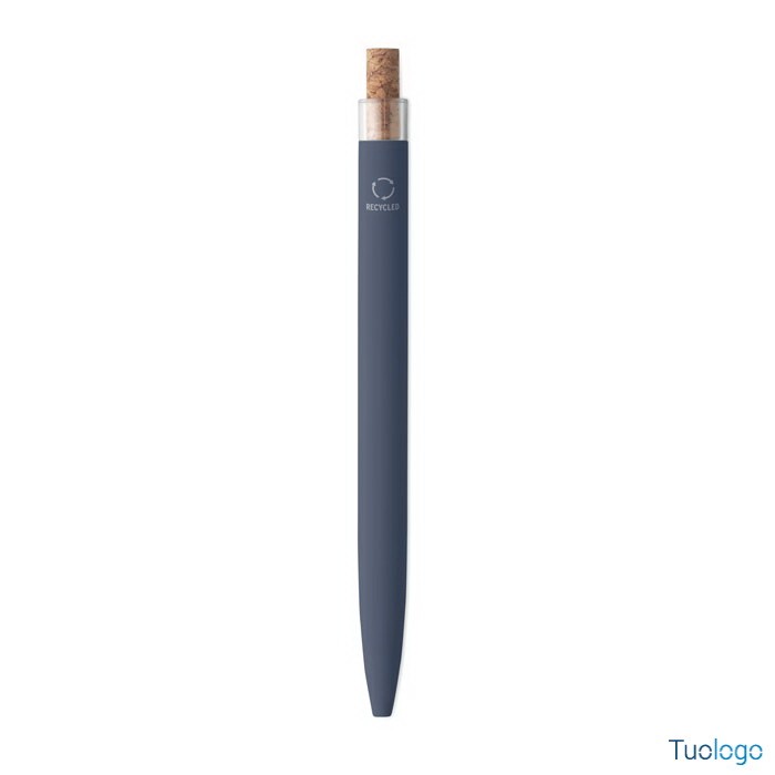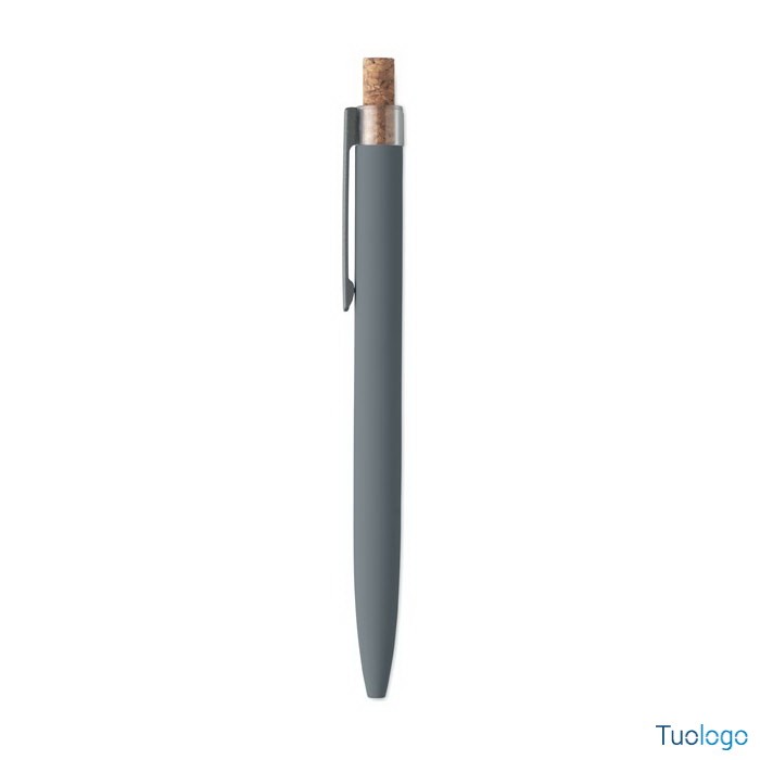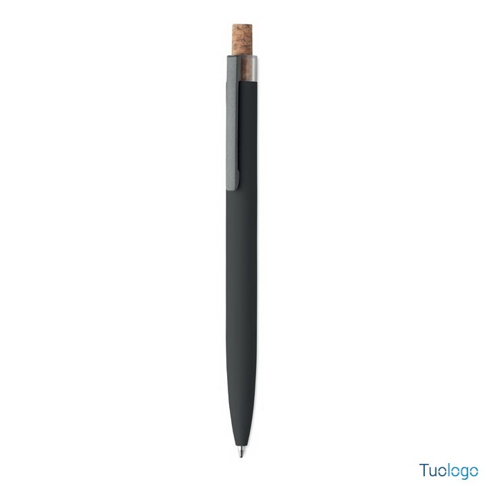 Penna a sfera Soini. Penna a sfera in alluminio riciclato con pulsante in sughero e clip in metallo. Inchiostro blu. Dimensioni: 1x14 cm.