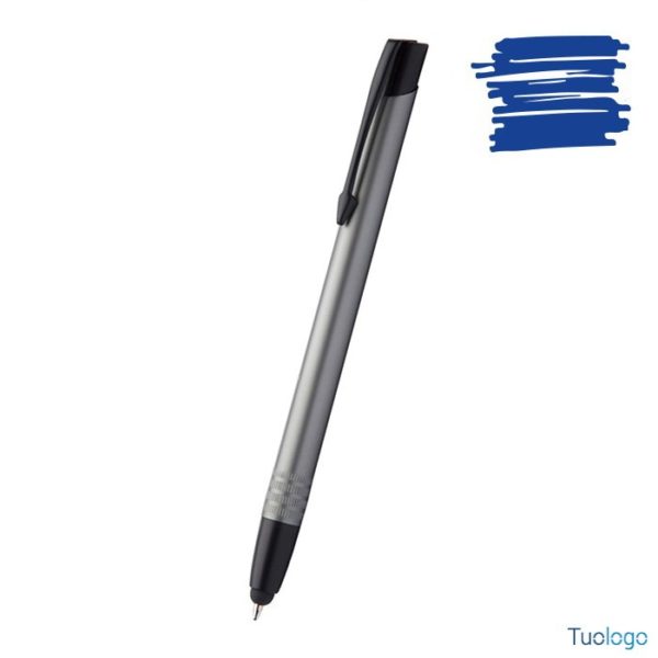 Penna a sfera touch Madura. In alluminio con fusto anodizzato. Refill blu. Dimensioni: cm 0,9x14,4.