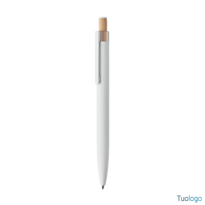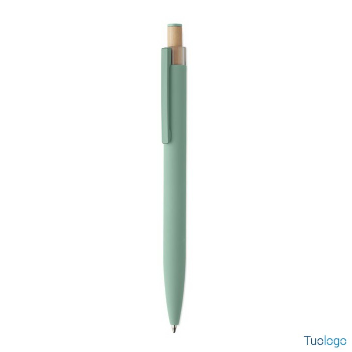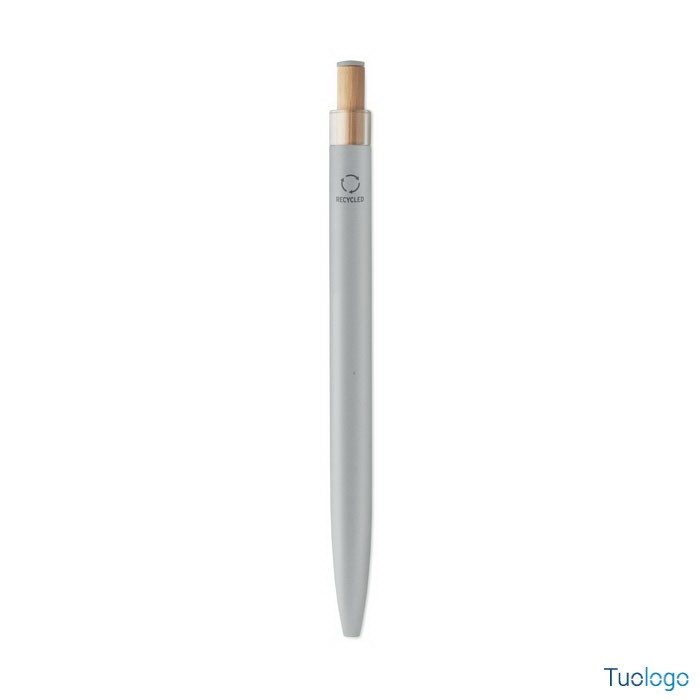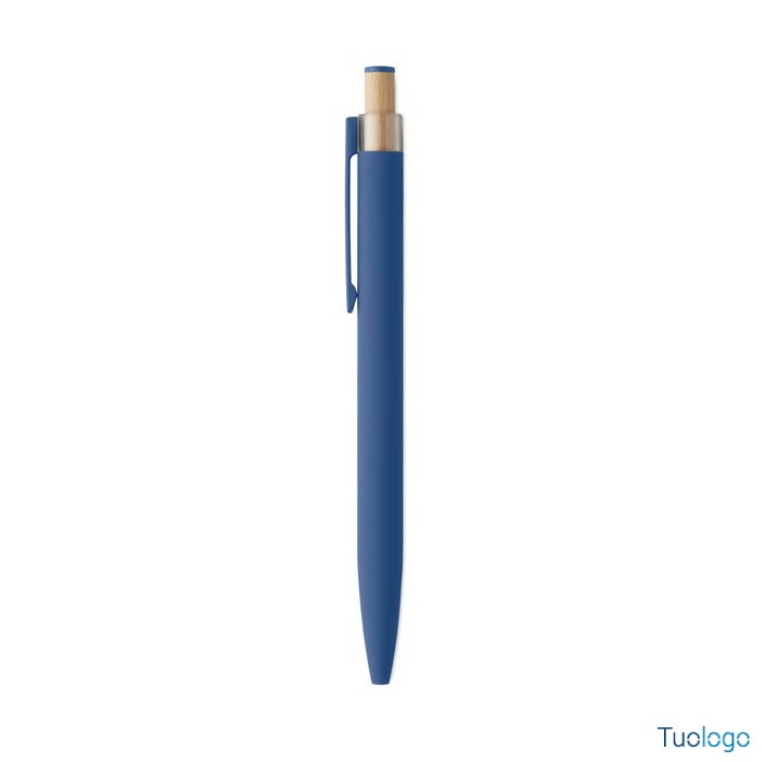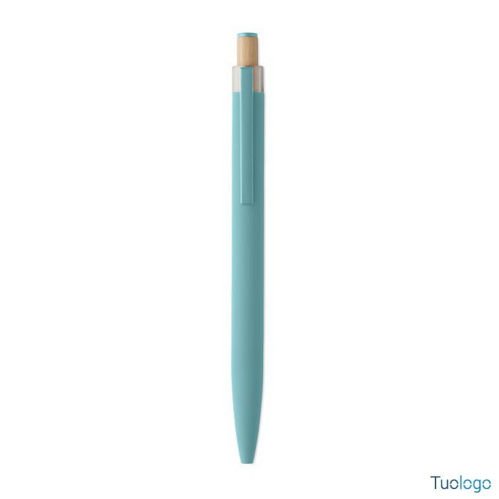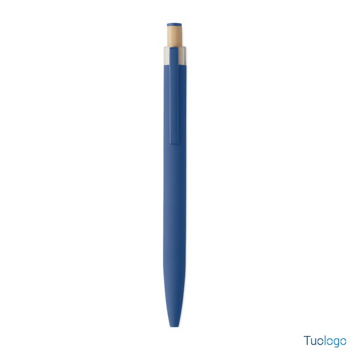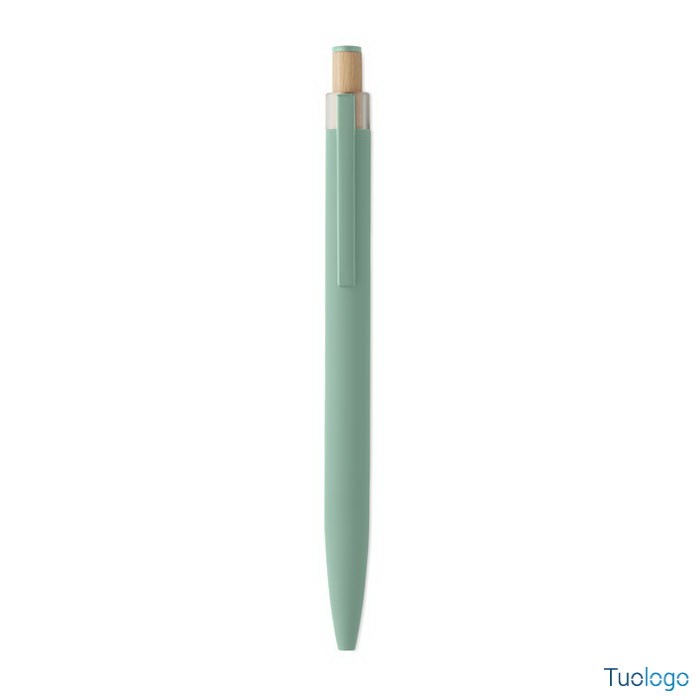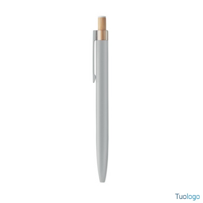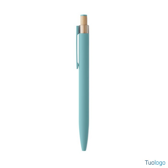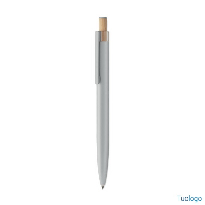 Penna a sfera Toysa. Penna a sfera in alluminio riciclato con pulsante in bamboo con dettagli in tinta e clip in metallo abbinata. Inchiostro blu. Dimensioni: 1x14 cm.