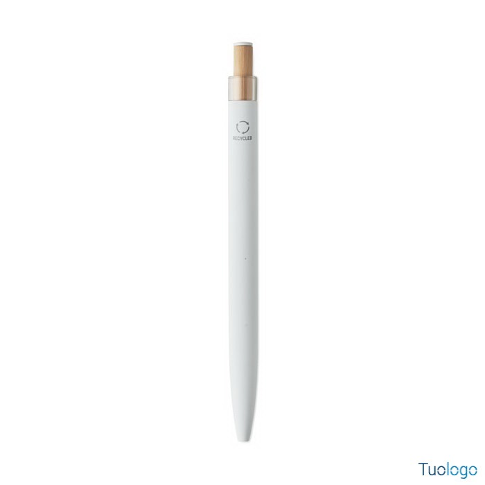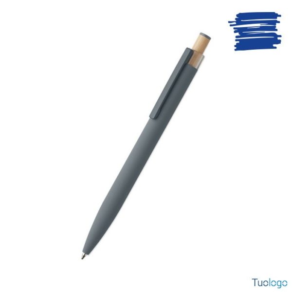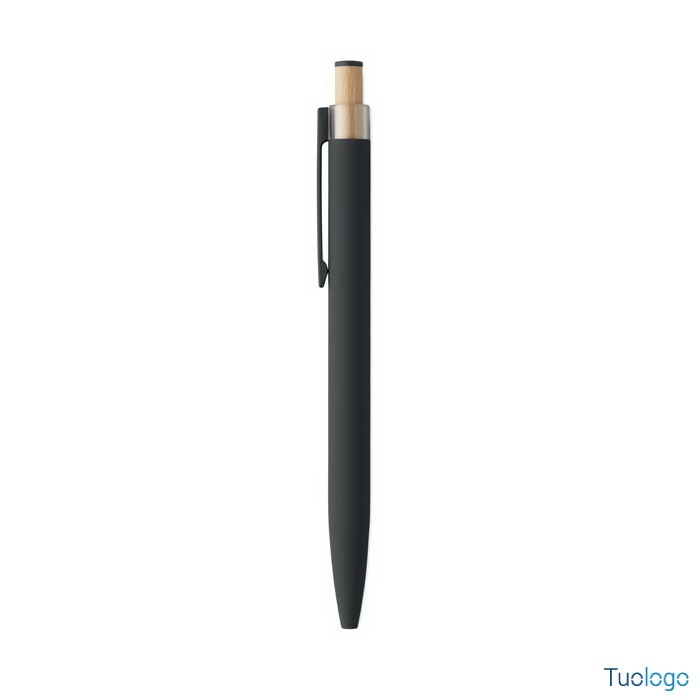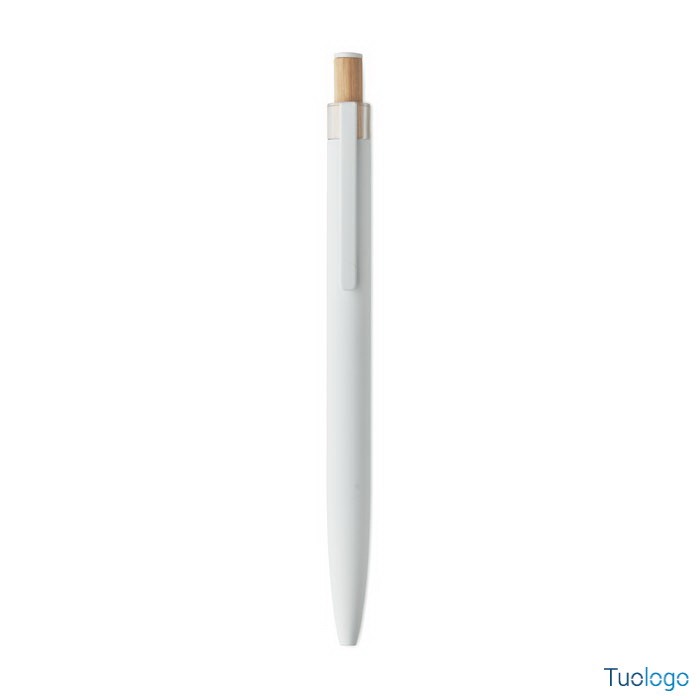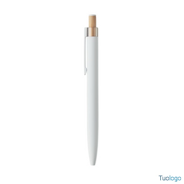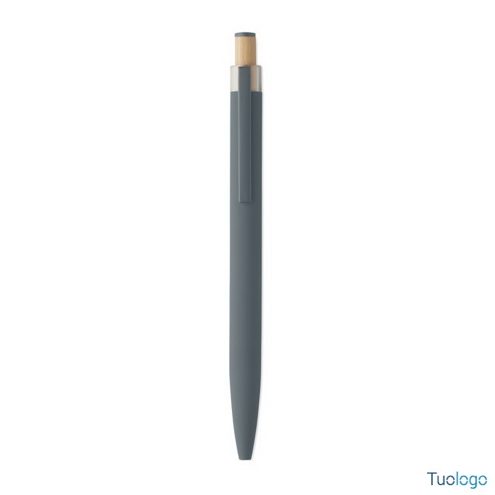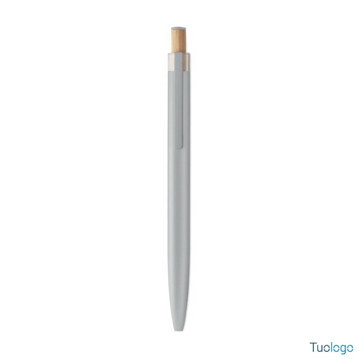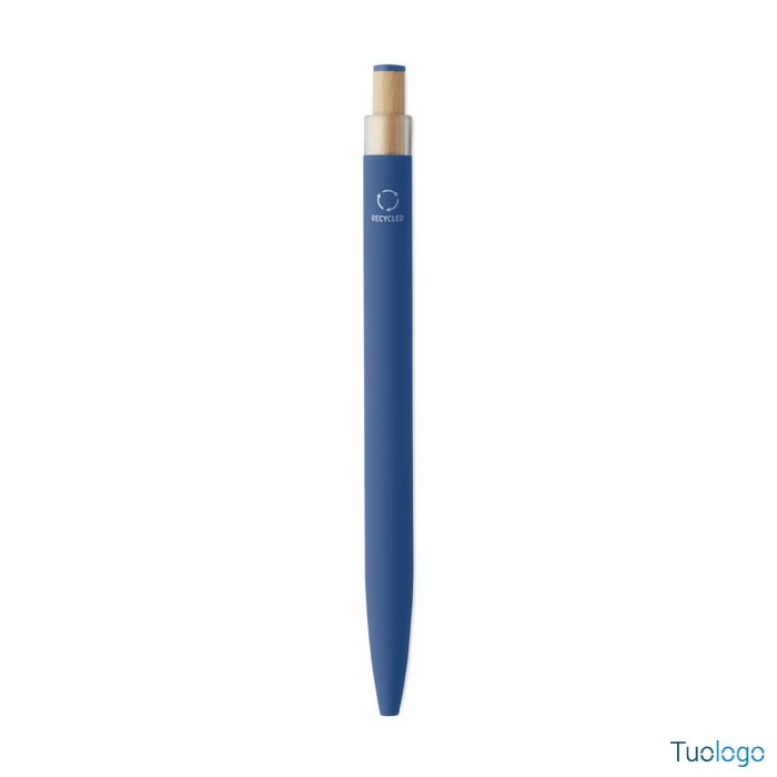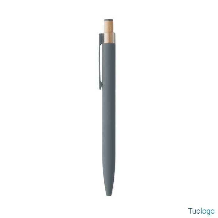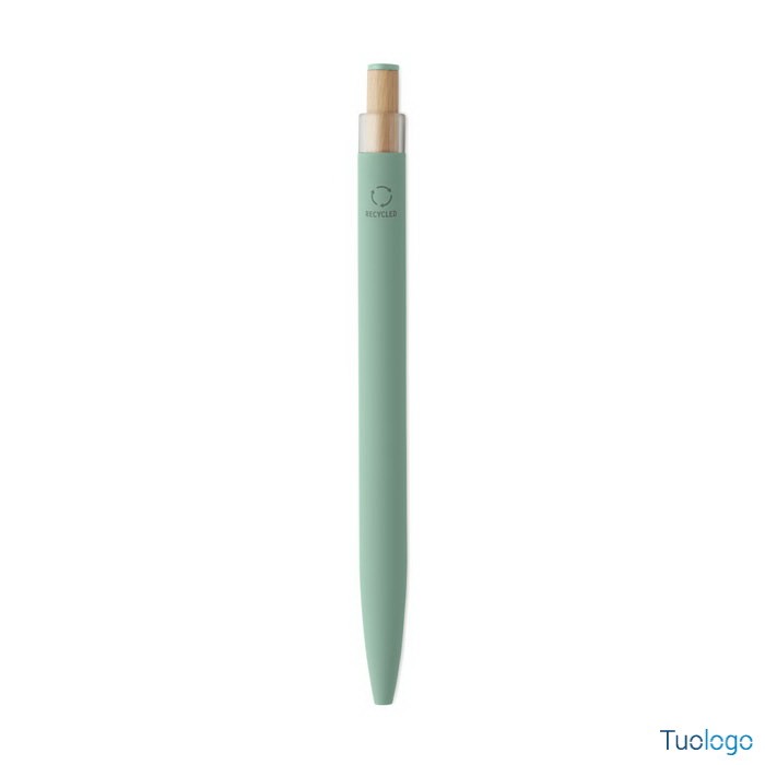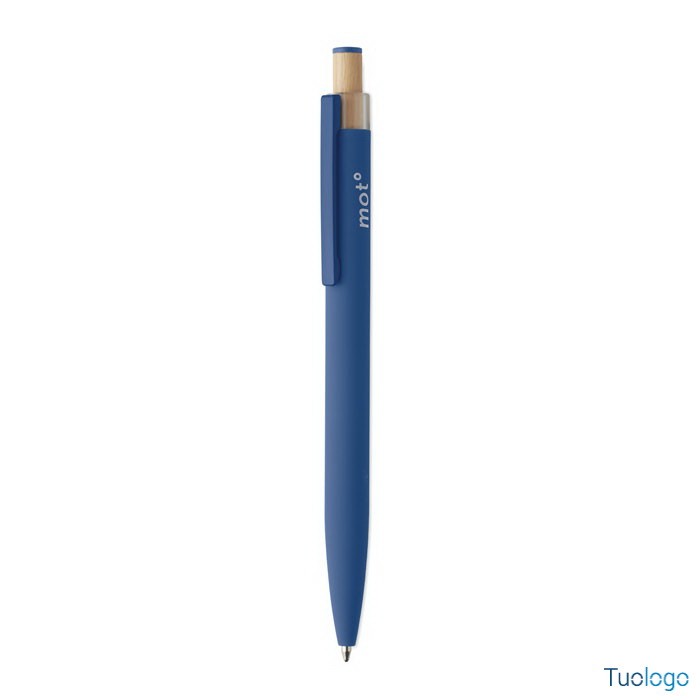 Penna a sfera Toysa. Penna a sfera in alluminio riciclato con pulsante in bamboo con dettagli in tinta e clip in metallo abbinata. Inchiostro blu. Dimensioni: 1x14 cm.