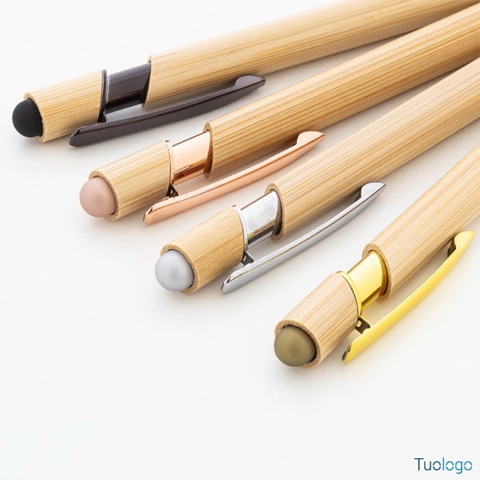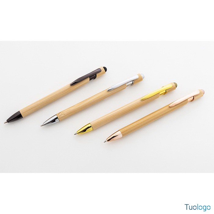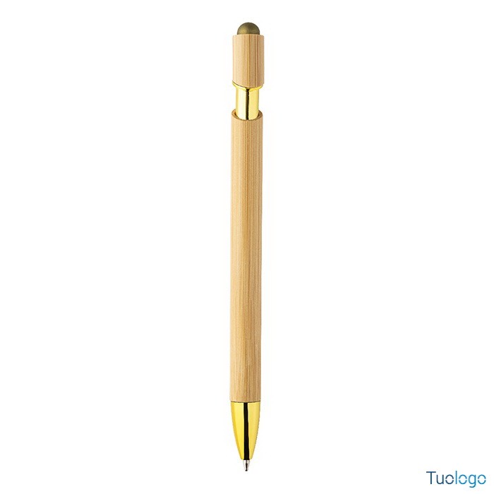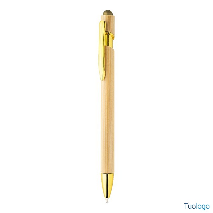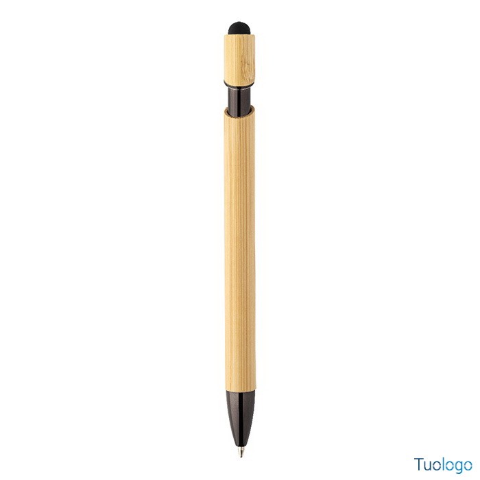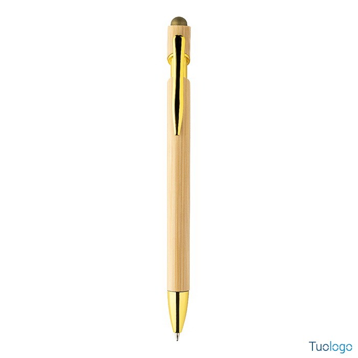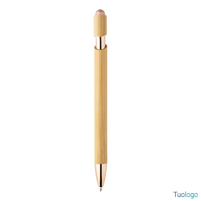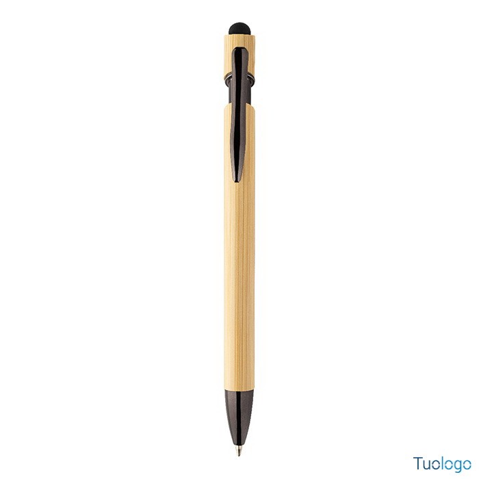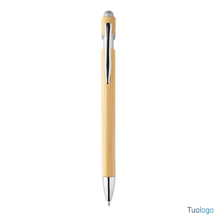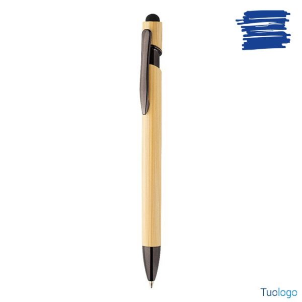 Penna a sfera Westeg. Penna a sfera in bamboo con refill blu, dettagli metallici lucidi e pennino capacitivo in colore coordinato. Dimensioni: cm 1x15.