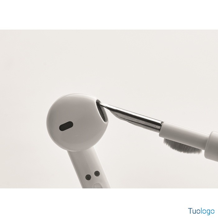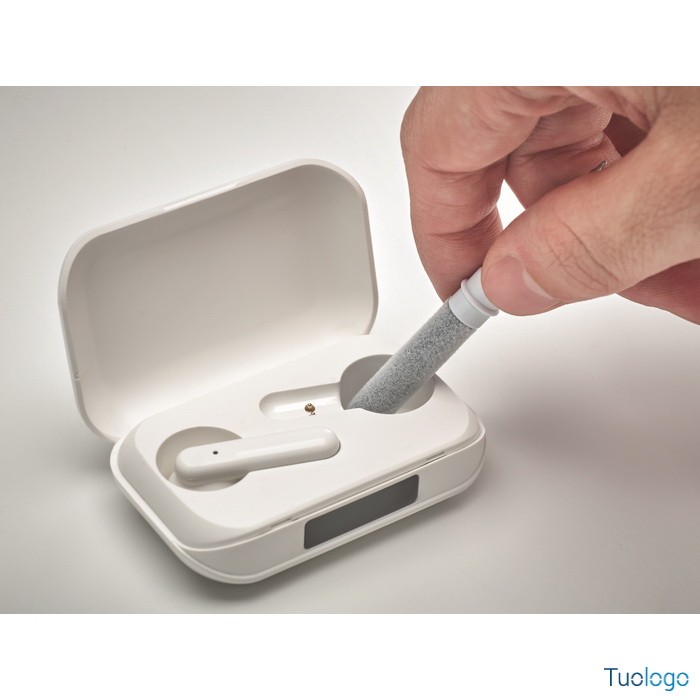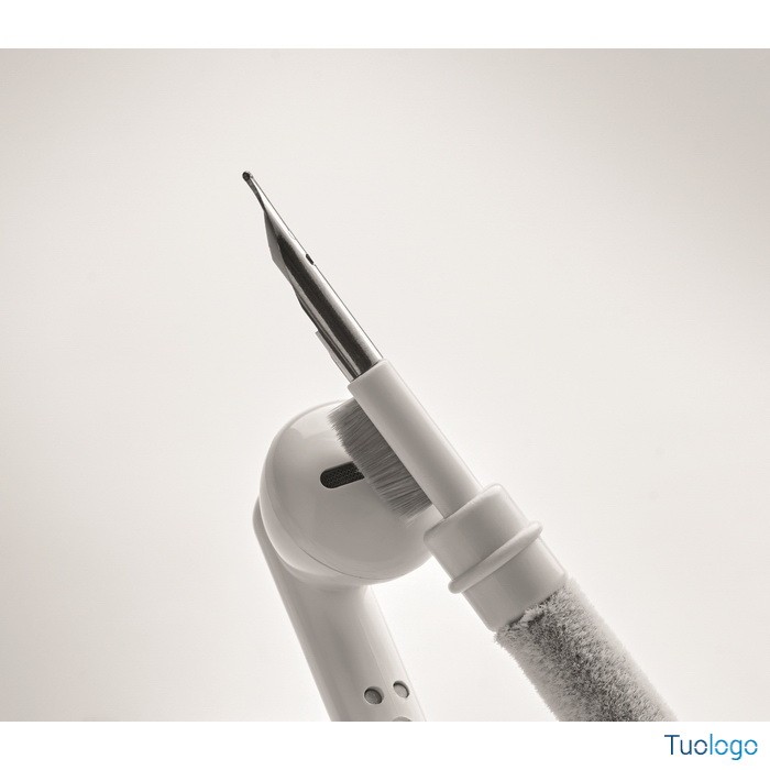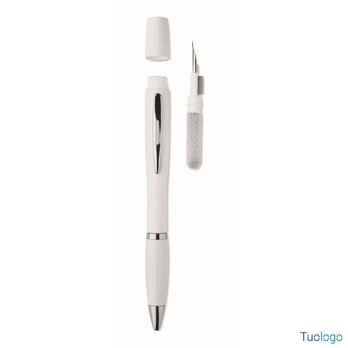 Penna Clin. Penna con set pulizia TWS. Dispone di un kit per la pulizia degli auricolari True Wireless Stereo (TWS): pennino in metallo, spugna e spazzolino. Inchiostro blu. Dimensioni: cm 1,4X15,9.