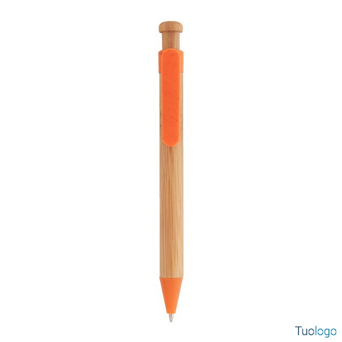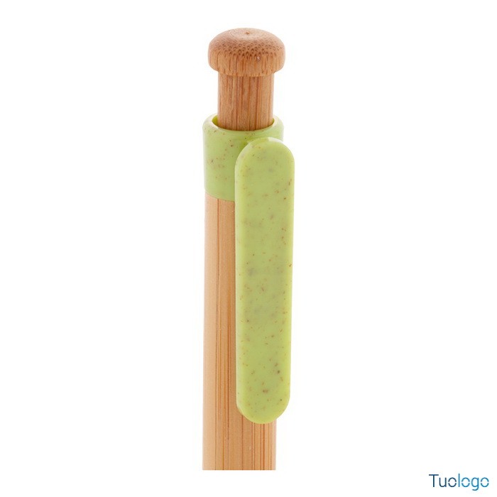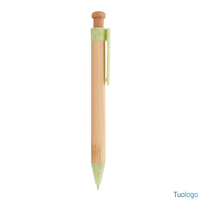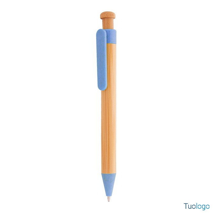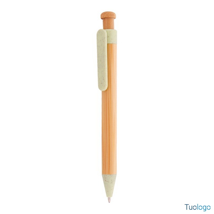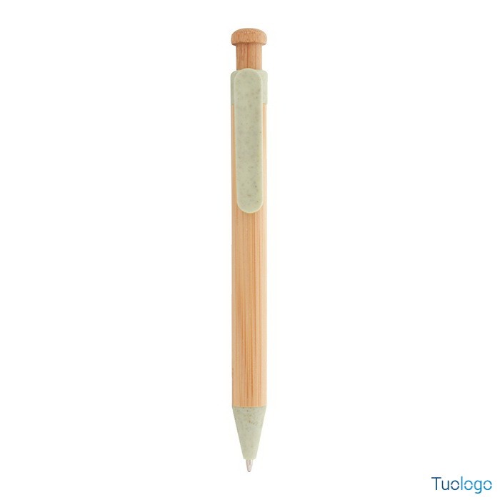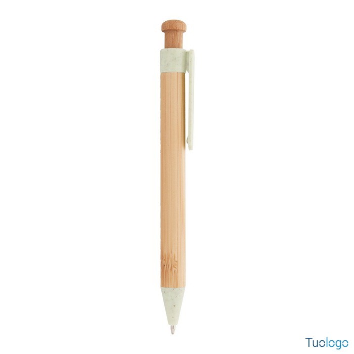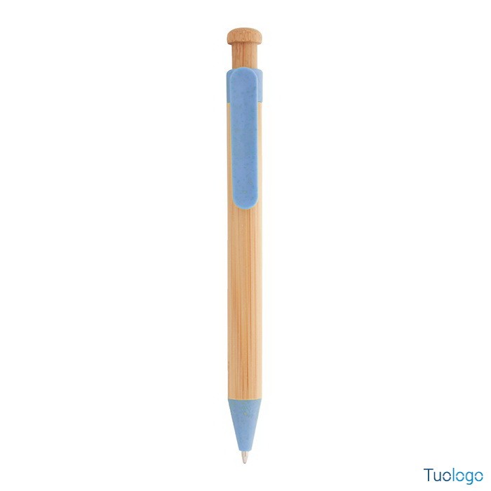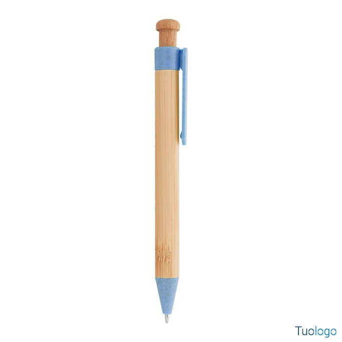 Penna in bamboo Covelo. Penna a sfera in bambù con parti in plastica ecologica di paglia di grano. Con refill blu. Dimensioni: cm 1,2x14.