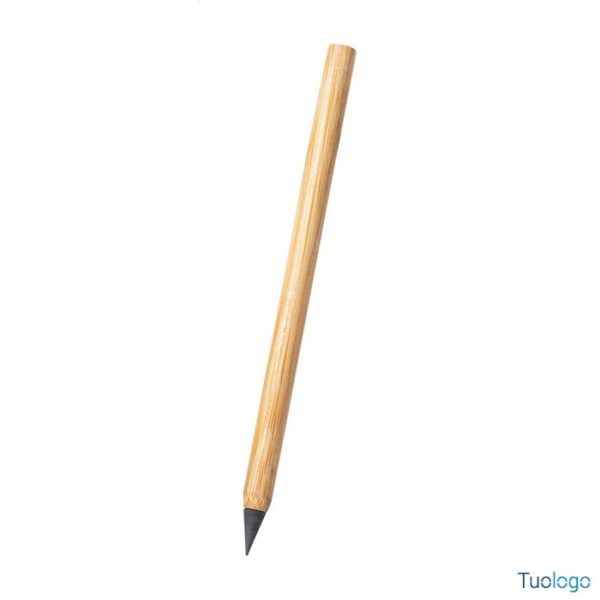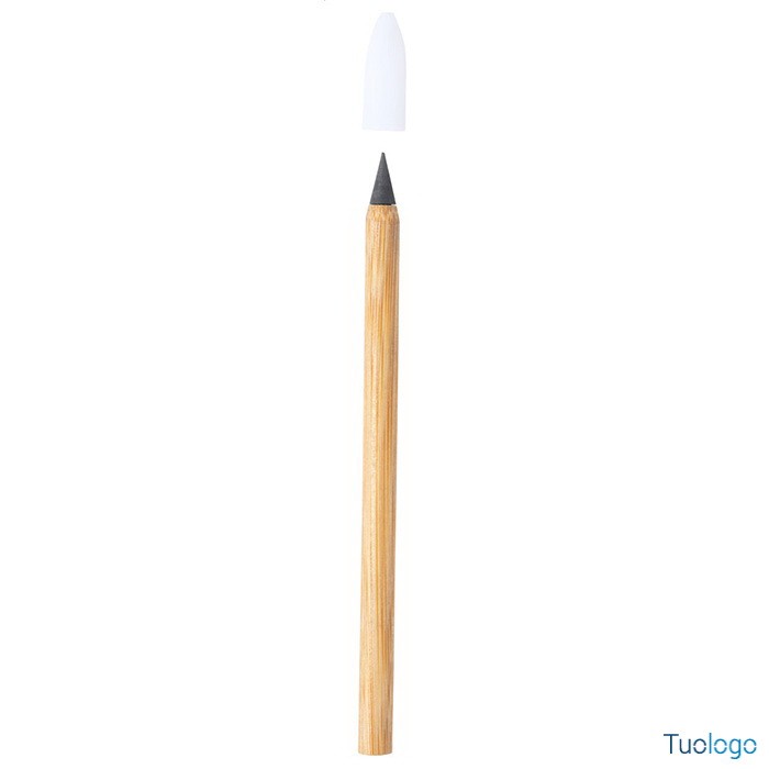 Penna in bamboo Livine. Penna di lunga durata senza inchiostro in bamboo con punta in lega metallica che ossida la carta. Questa penna scrive come una matita. Anche cancellabile. Dimensioni: diam cm 0,8×13,7.