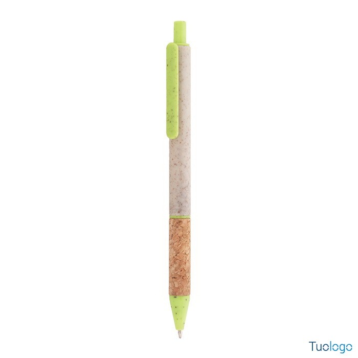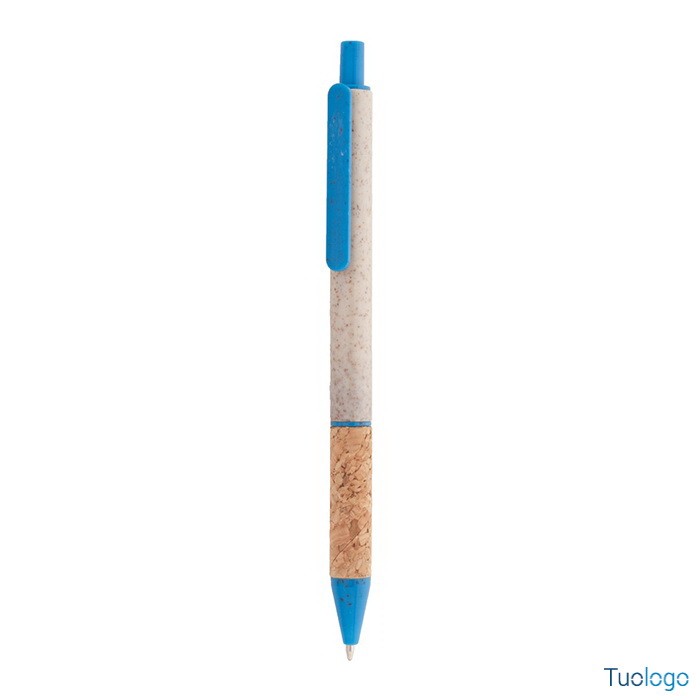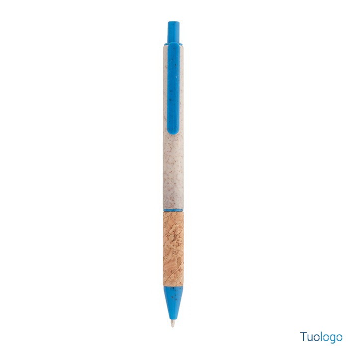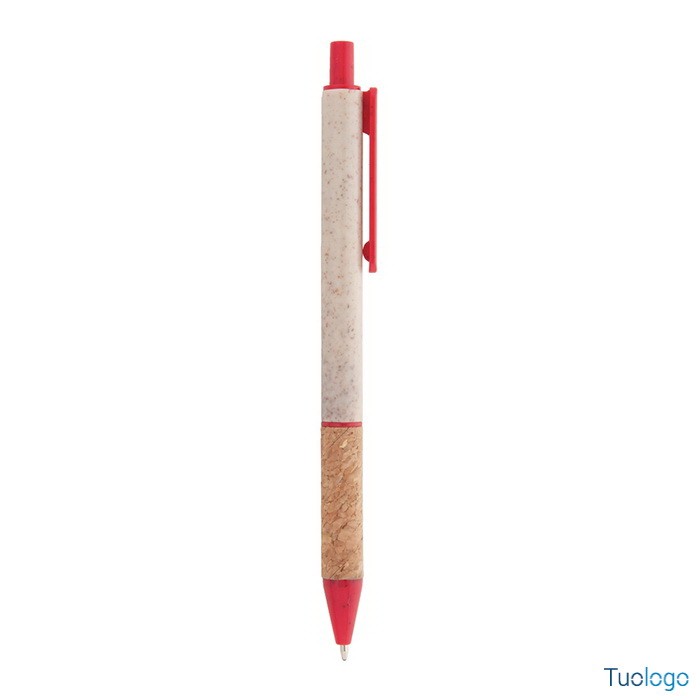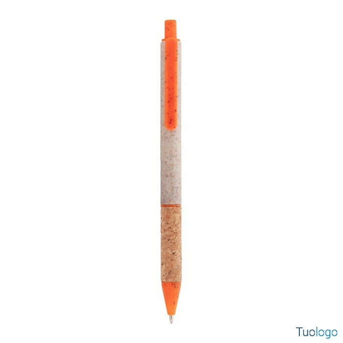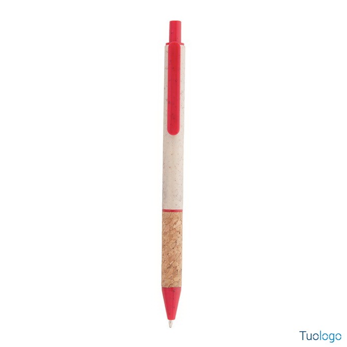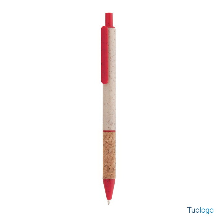 Penna in paglia di grano Vouga. Penna a sfera in plastica ecologica di paglia di grano con impugnatura in sughero naturale e parti colorate. Con refill blu. Dimensioni: diam cm 0,9x14,2.