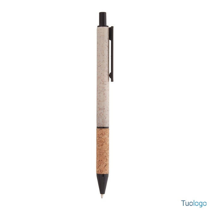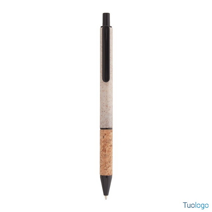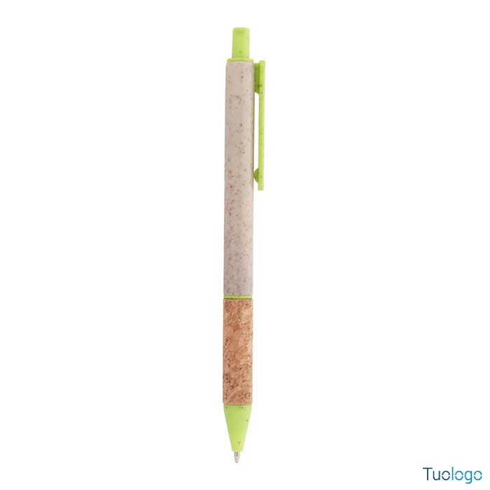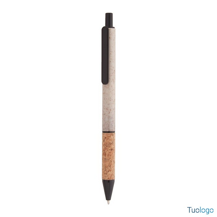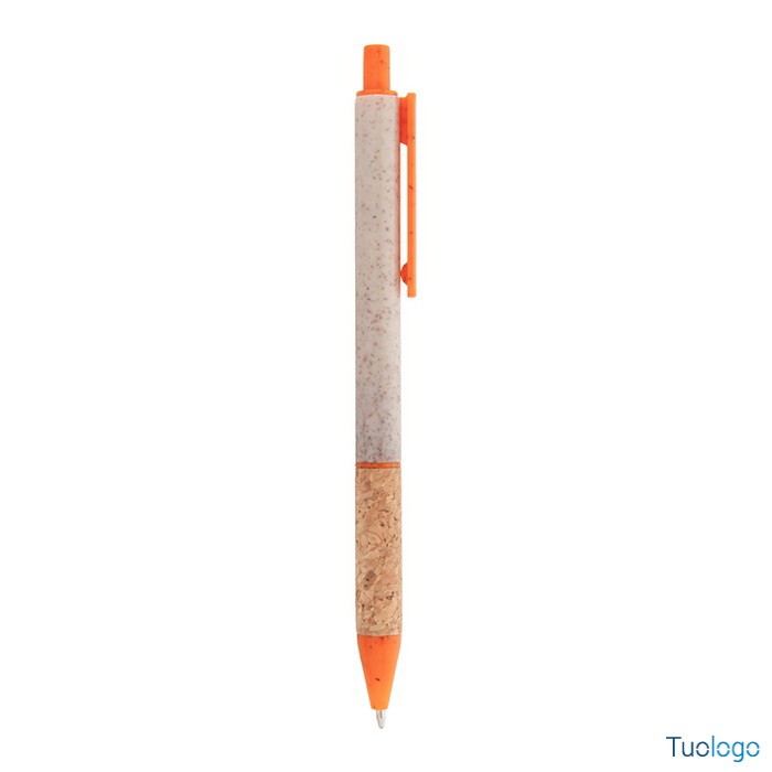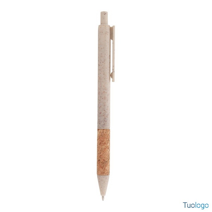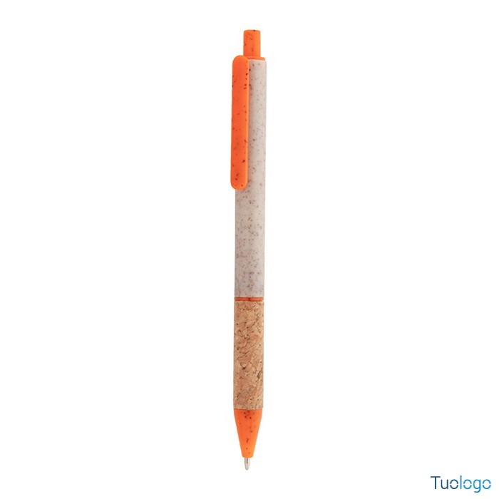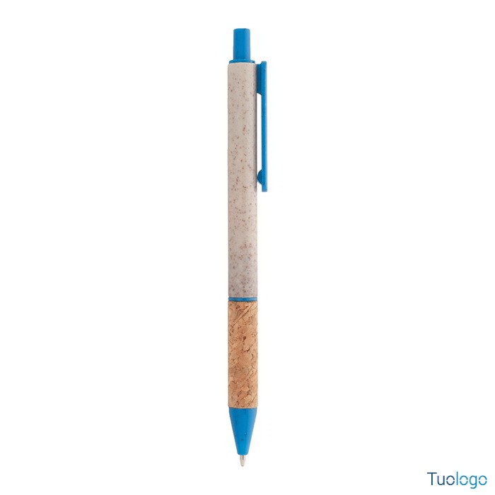 Penna in paglia di grano Vouga. Penna a sfera in plastica ecologica di paglia di grano con impugnatura in sughero naturale e parti colorate. Con refill blu. Dimensioni: diam cm 0,9x14,2.