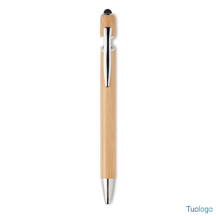 Penna touch in bamboo Rucara. Penna a sfera a scatto con finitura in bamboo. Inchiostro blu. Dimensioni: diam cm 1,1x15,2.