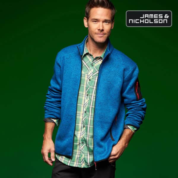 Pile uomo Amesbury. JAMES & NICHOLSON. Tasche laterali con zip e una su manica sinistra con zip, orlo a contrasto su maniche e polsini. 100% poliestere esterno, morbido pile interno, 280 gr.