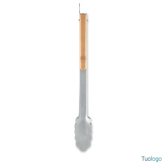 Pinze da barbecue Pega . Pinze da barbecue in acciaio inox con impugnature in bamboo. Meccanismo di bloccaggio. Dimensioni: cm 33x4x3,5.