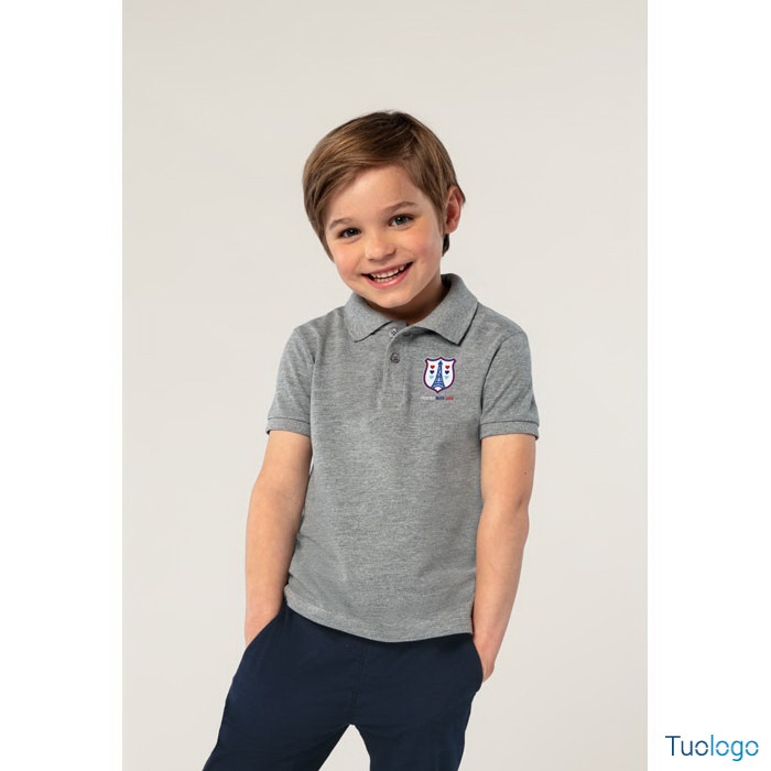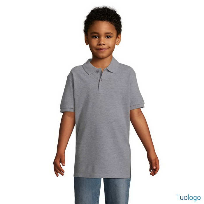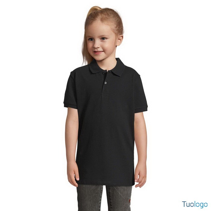 Polo bambino Morelia. SOLS. 100% cotone pettinato Ringspun piquè 180 gr, collo e giromaniche a costina 1x1, nastro di rinforzo sul collo, maniche corte, 2 bottoni in tinta. Stampa ad 1 colore inclusa.