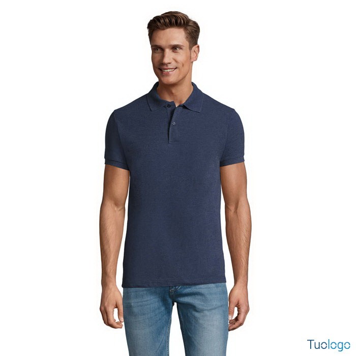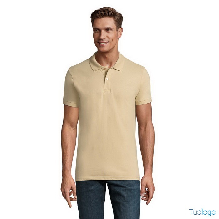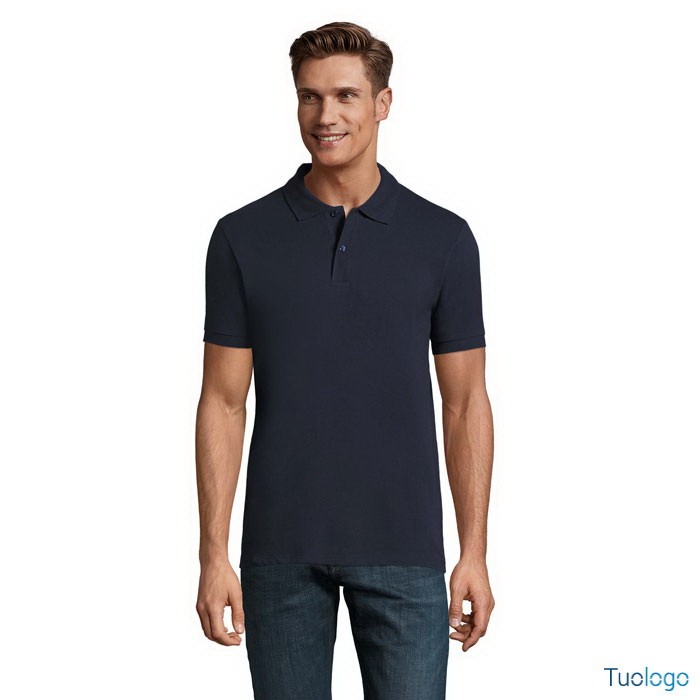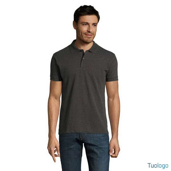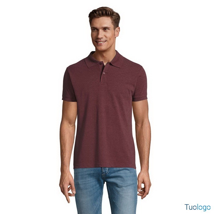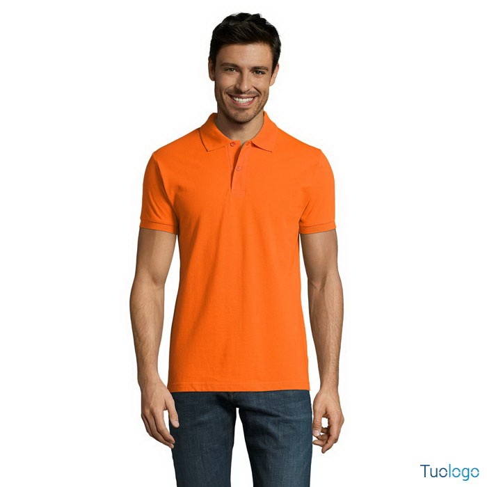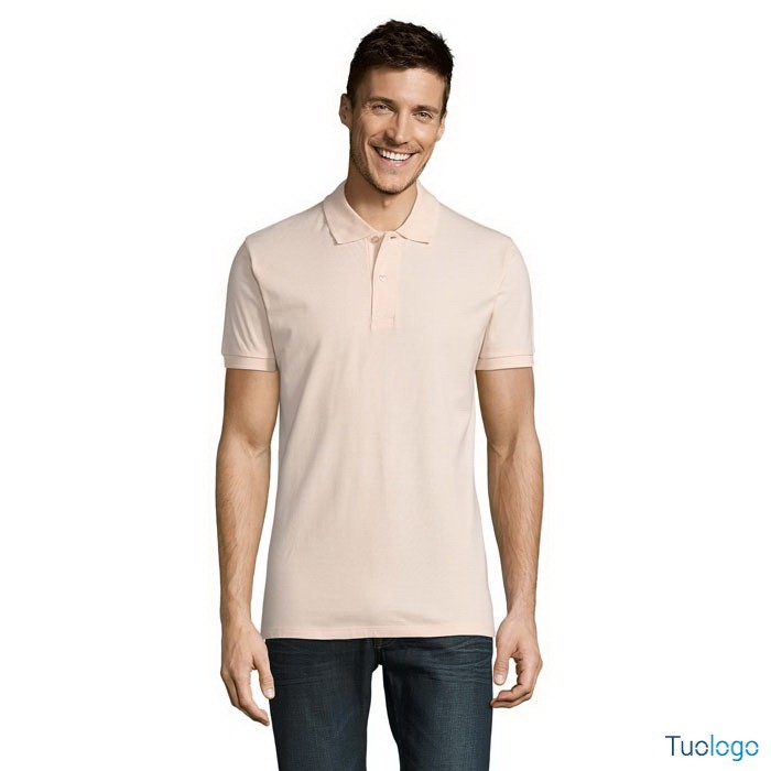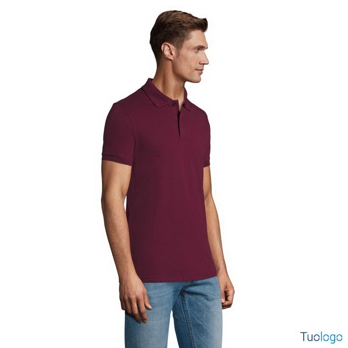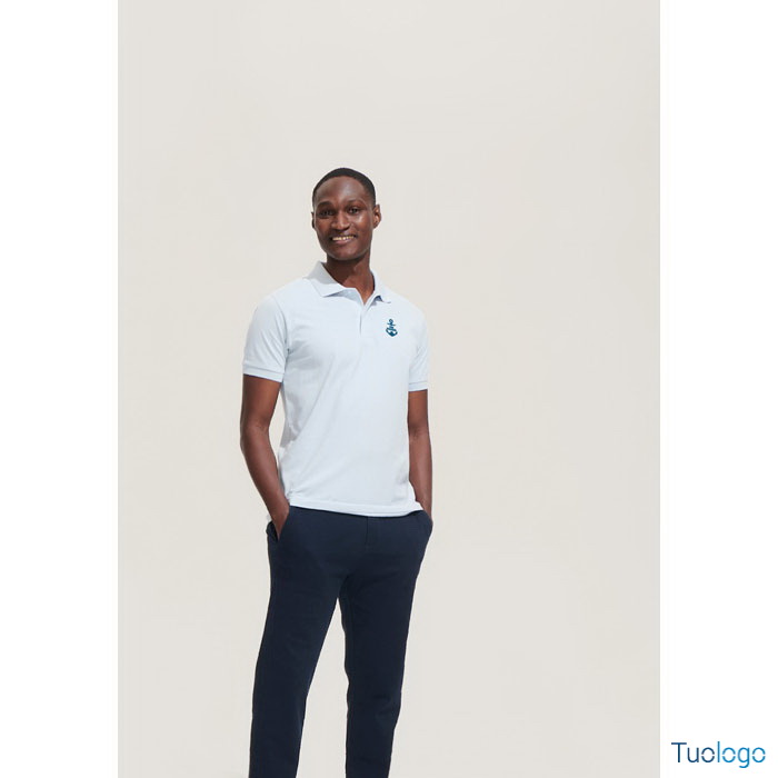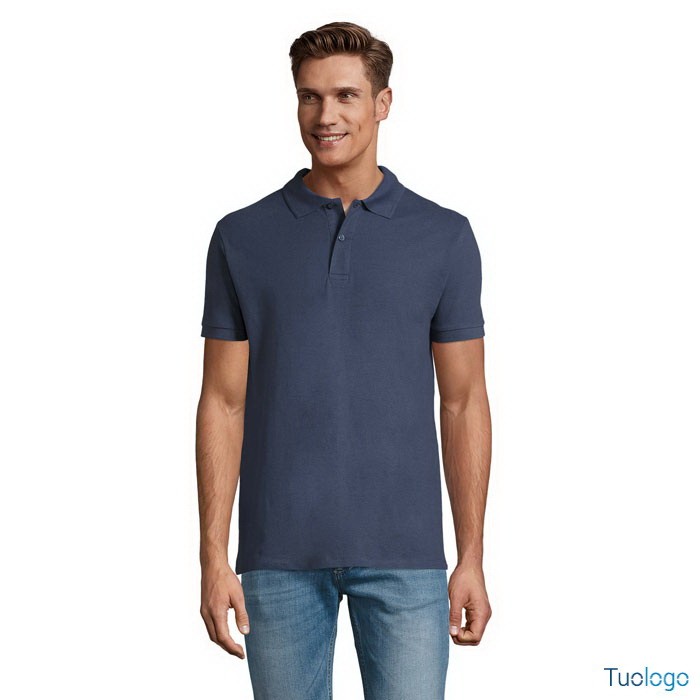 Polo uomo Morelia. SOLS. 100% cotone pettinato ringspun piqué 180, colletto e polsini a coste, nastro di rinforzo sul collo, maniche corte, 2 bottoni perlati tono su tono, tagliata e cucita. Stampa ad 1 colore inclusa.