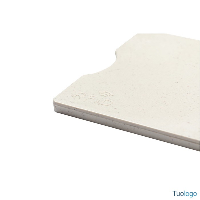 Porta carte Aboim. Porta carte di credito singola in ecologica plastica di paglia di grano con protezione RFID. Dimensioni: cm 6x9x0,4.