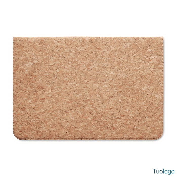 Porta computer in sughero Laerru. Per computer da 14 pollici, in sughero con patta di chiusura magnetica. Dimensioni: cm 37x26.