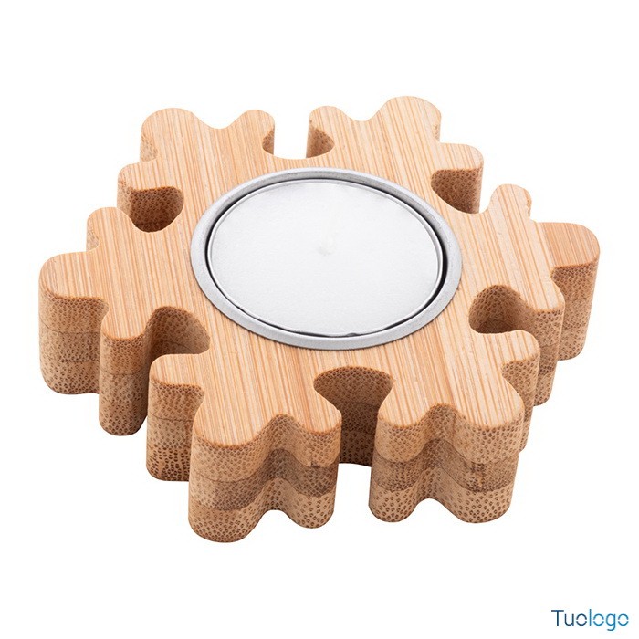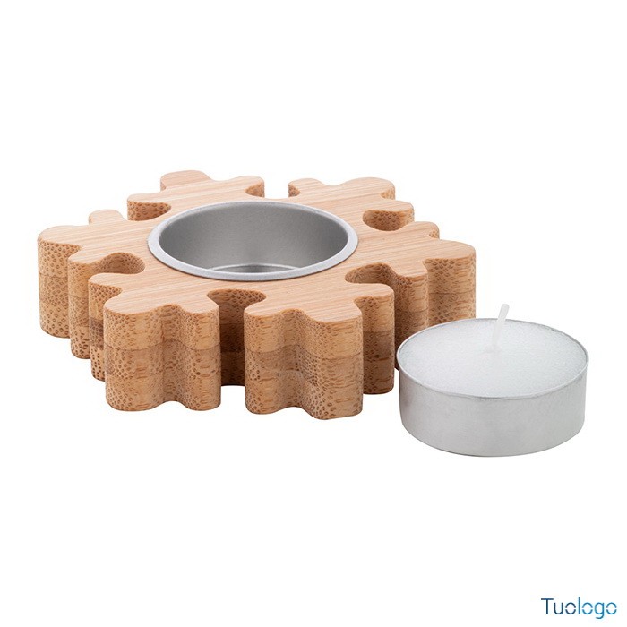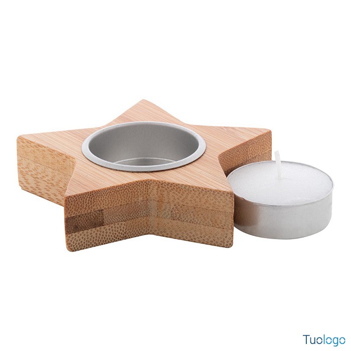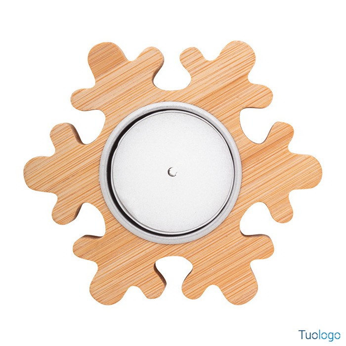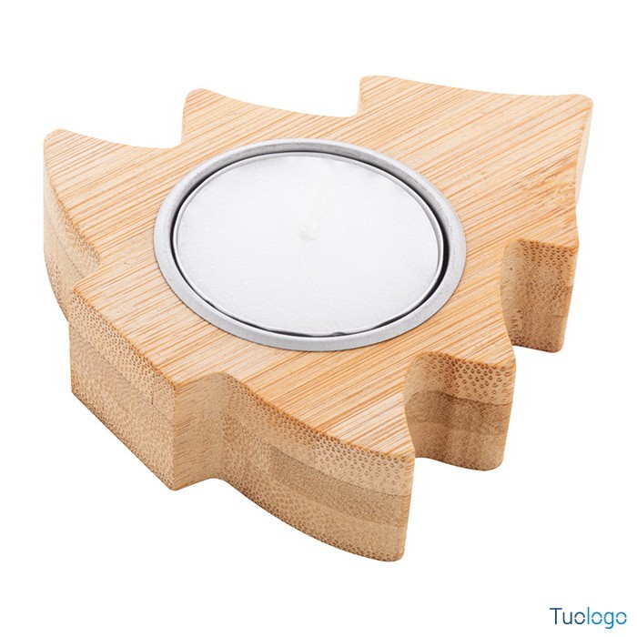 Portacandele Gnaron. Portacandele a tema natalizio in bambù con tea light in cera vegetale profumata alla vaniglia. Prodotto fornito in una confezione di cartoncino. Dimensioni: cm 9,5x9,5x2.