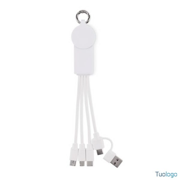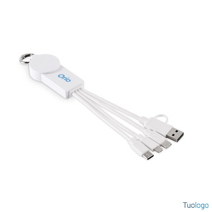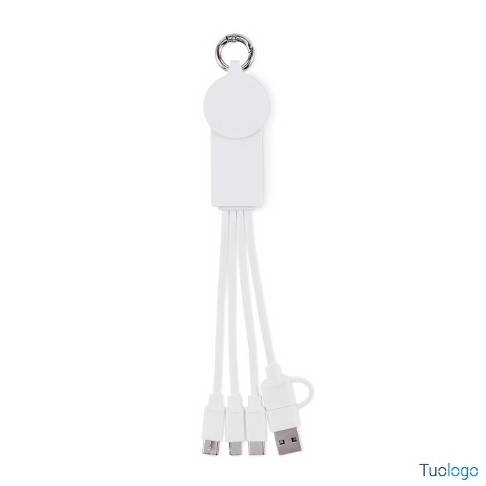 Portachiavi con cavo di ricarica Cuaro. Portachiavi con cavo di ricarica con ingresso: 2 in 1 tipo C e tipo A. Uscita: Ricarica orologio Samsung® e Apple® Dimensioni: 3,2x1,2x20 cm 2 x tipo C e micro B 2 in 1 pin. Cavo in TPE riciclato.
