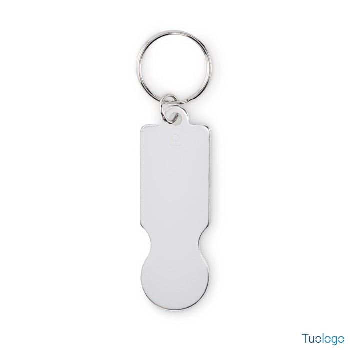 Portachiavi con gettone Tajma. Portachiavi con gettone in alluminio riciclato. Dimensioni:cm 6,9x2,3.