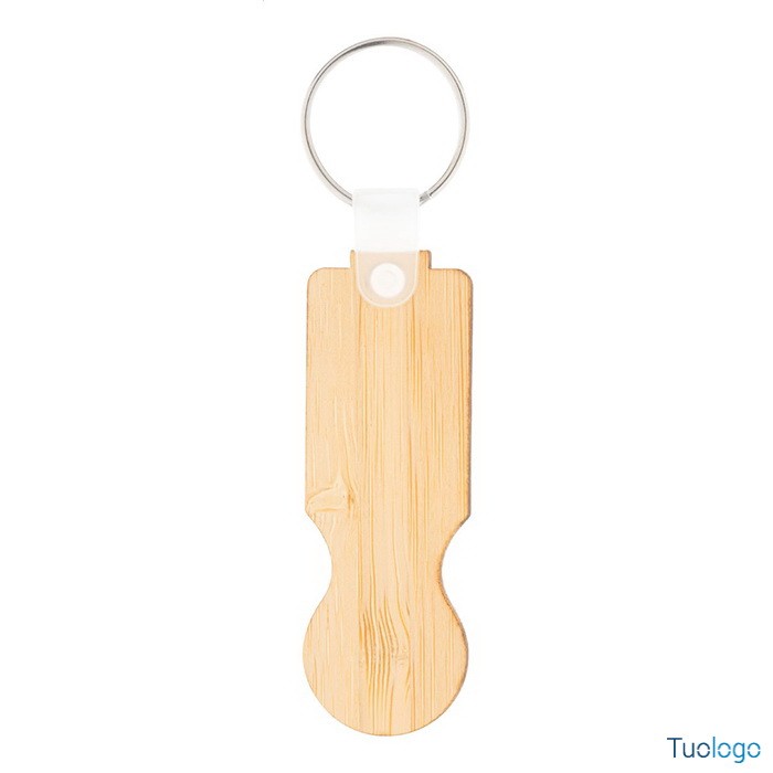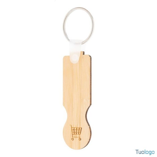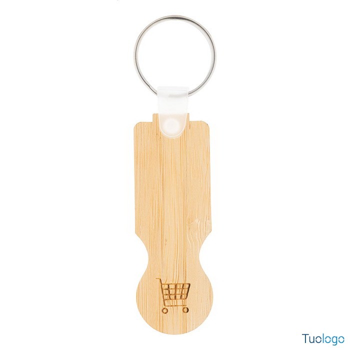Portachiavi in bamboo Osland. Portachiavi in compensato di bamboo con inserto per carrello spesa. Dimensioni: diam cm 2,2×9,2×0,2.