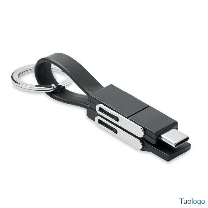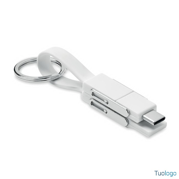 Portachiavi ricarica Pega. Portachiavi con cavo di ricarica 4 in 1. Ingresso/uscita: Tipo C x2, Tipo A, Micro USB.. Dimensioni: cm 7,3x1,4x1.