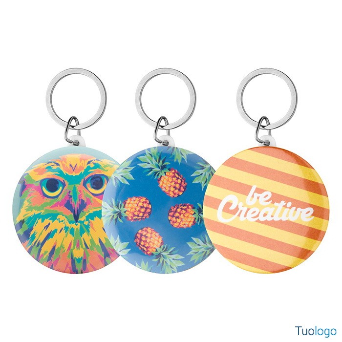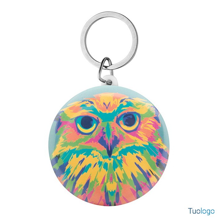 Portachiavi tondo Pingrup. In plastica. I prezzi includono la stampa in quadricromia su 1 lato. Dimensioni: cm diam 5,8.