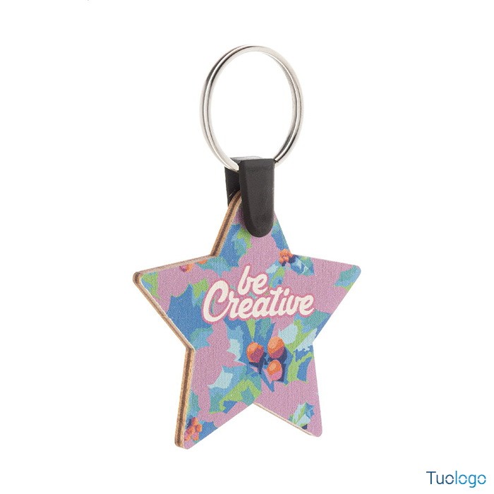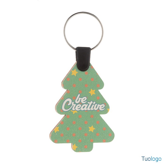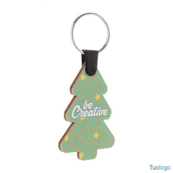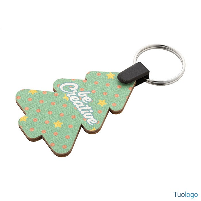 Portachiavi Velika. Portachiavi natalizioin compensato di betulla personalizzabile a colori ed anello in metallo. Il costo comprende la stampa UV LED su un lato. Dimensioni: cm 4,2x6x3.