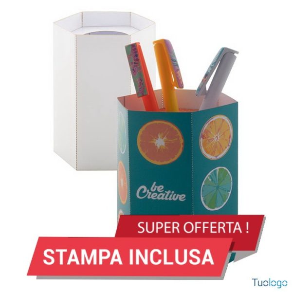 Portapenne in cartone Hoover. A forma esagonale. I prezzi includono la stampa in quadricromia. Dimensioni: cm 9,5x13.